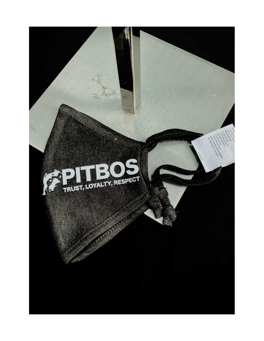 Stofmaske med Pitbos brandlogo på. Masken er et streetwear produkt og ikke et sundhedsfagligt, medicinsk udviklet produkt. Materiale: 96% polyester, 4% elasthan. Indvendigt stof materiale: 100% bomuld. Masken har justerbare elastikker. Vask: 60 grader. OBS! Ingen returret på masker.