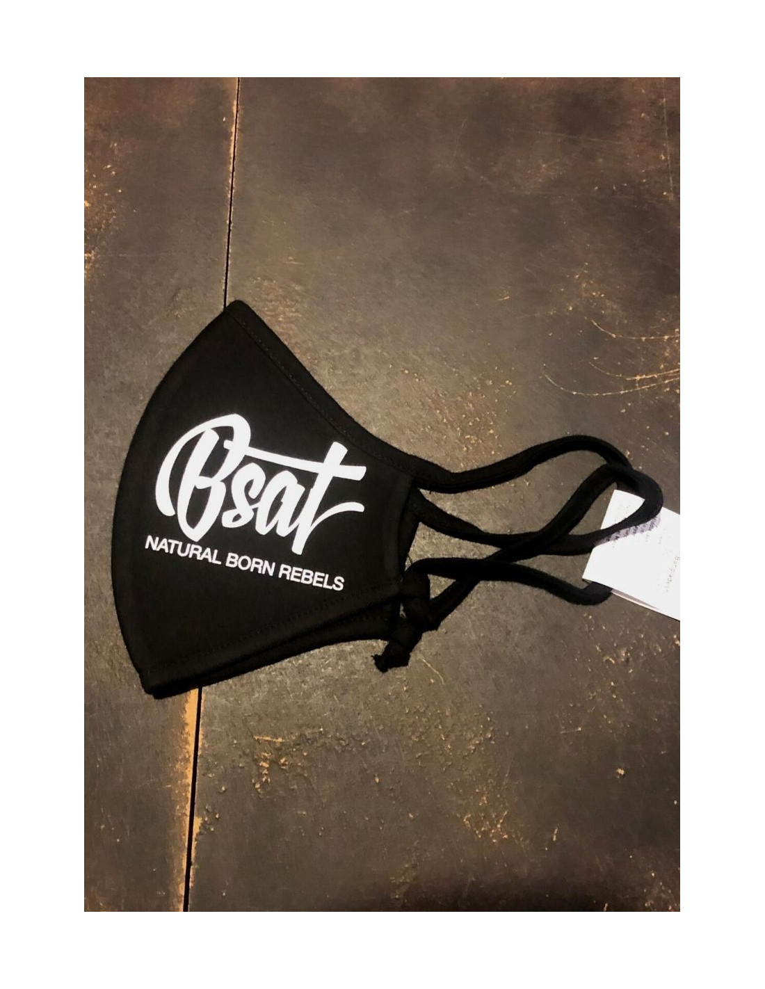 Stofmaske med BSAT brandlogo på. Masken er et streetwear produkt og ikke et sundhedsfagligt, medicinsk udviklet produkt. Materiale: 96% polyester, 4% elasthan. Indvendigt stof materiale: 100% bomuld. Masken har justerbare elastikker. Vask: 60 grader. OBS! Ingen returret på masker.