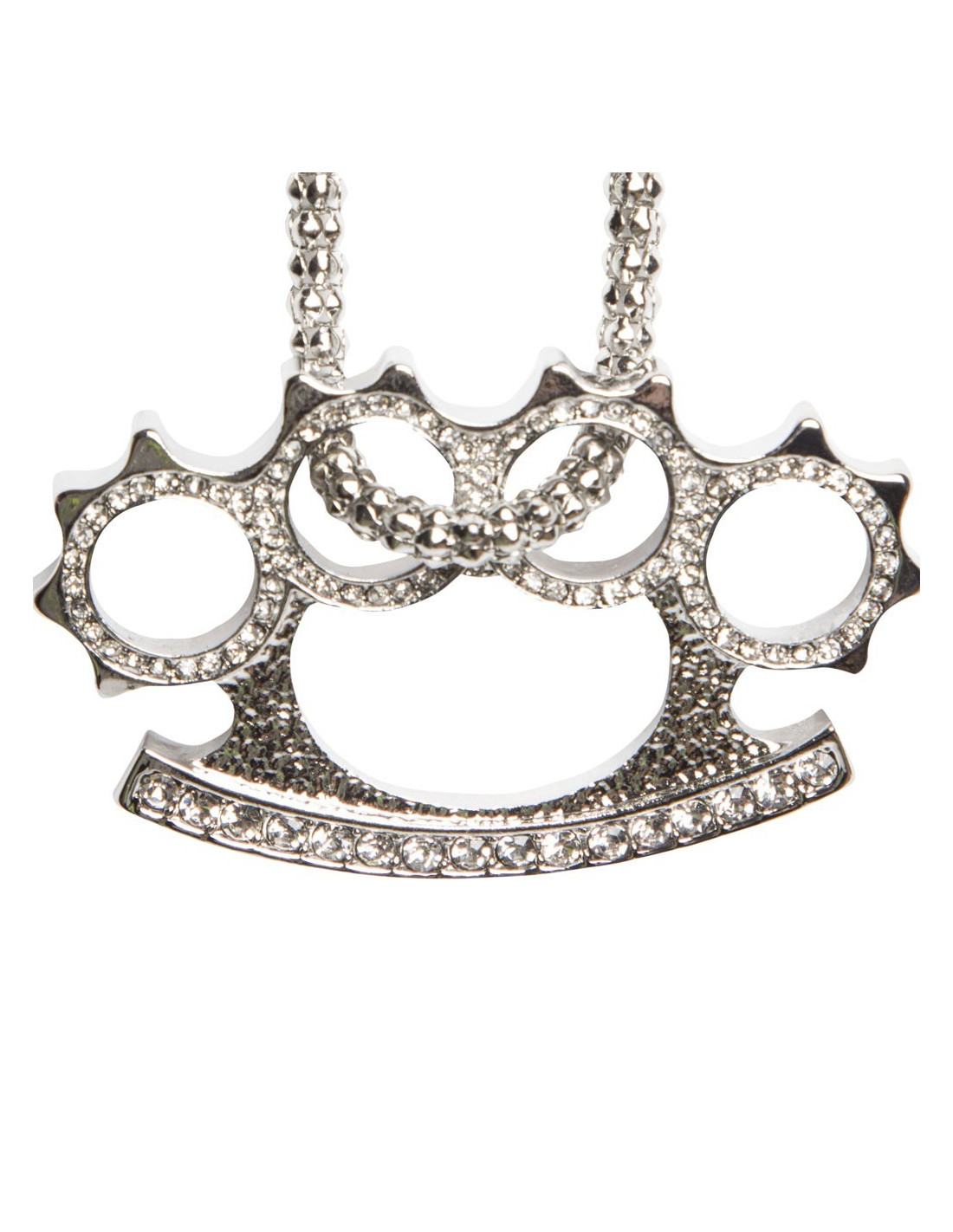 Silver Knuckledusters Necklace. Colour: Silver with small, white "diamonds". The width of the pendant is 7 cm and length 4.5 cm.