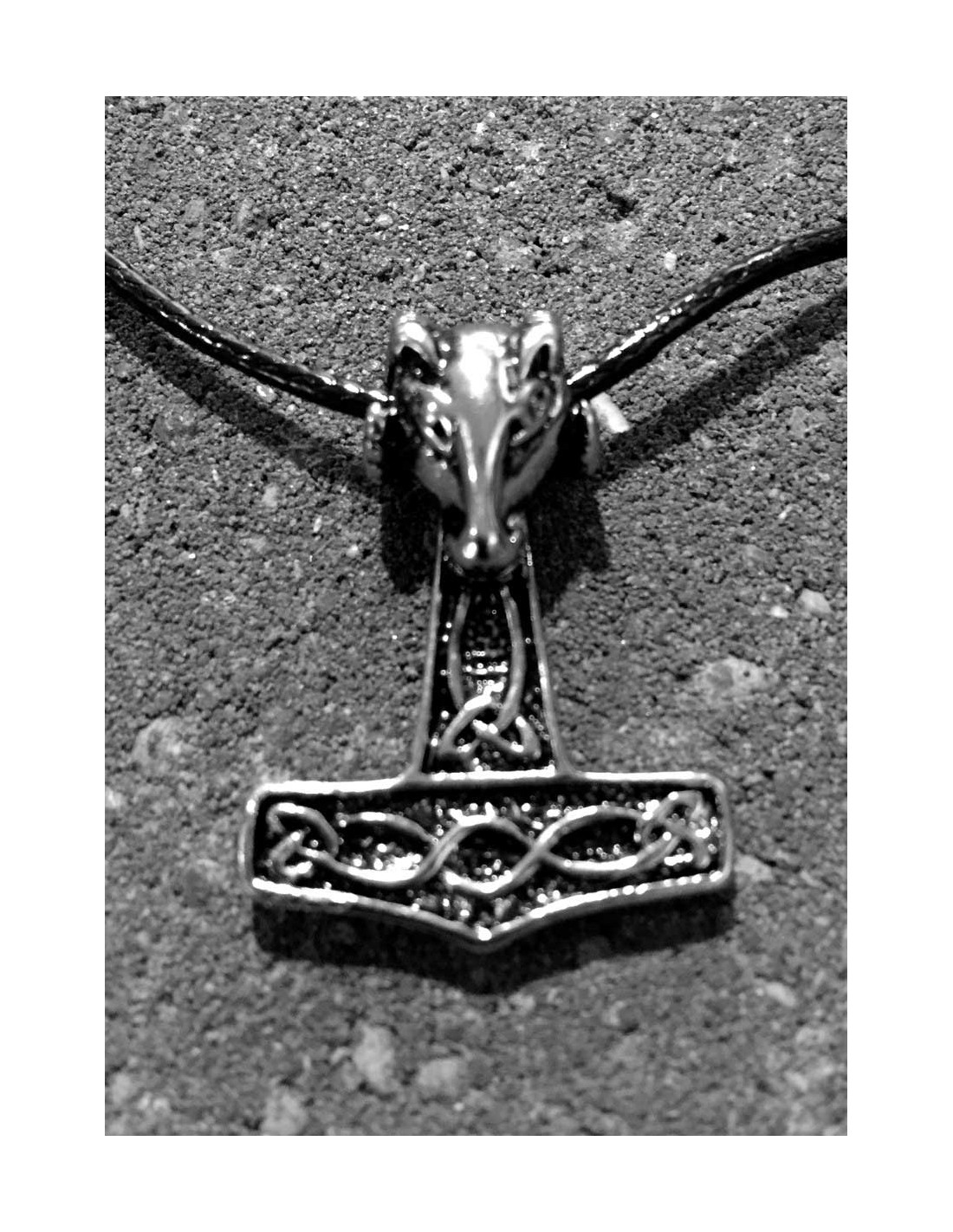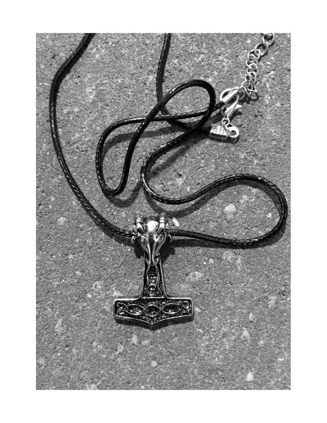Cool Viking halskæde med Thors Hammer og sort lædersnor. Hammer: 32mm