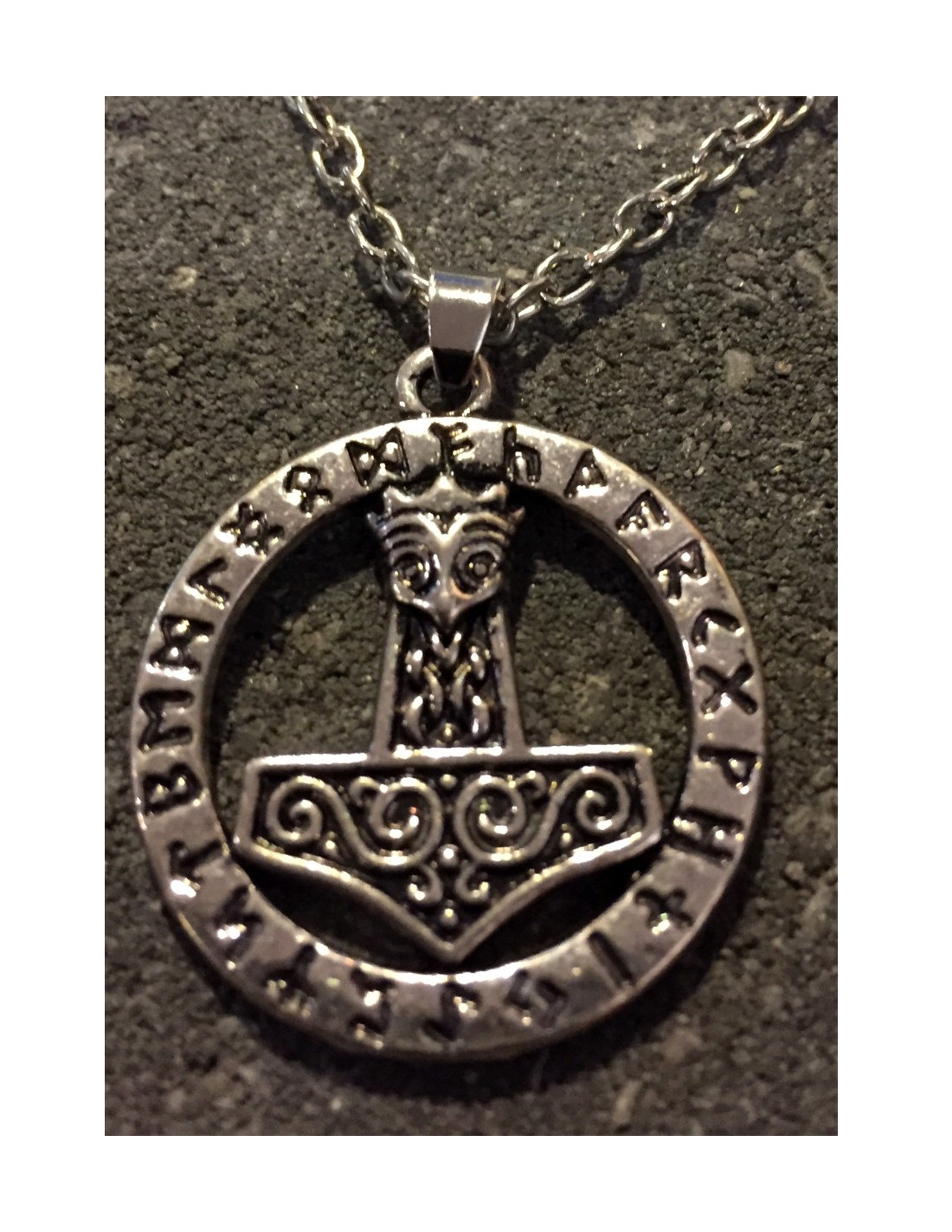 Stilet Viking Thor Halskæde med rundt emblem. Størrelse: 25mm i diameter.