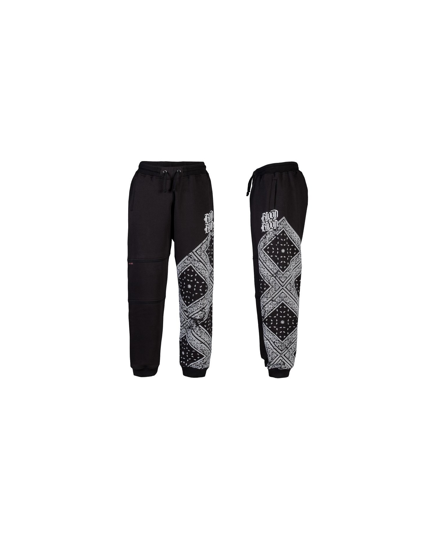 Dope sorte Sweatpants fra Blood In Blood Out med stort bandana print på venstre ben. Sweatpantsene er behagelige og et sikkert valg for alle, der er nede med urban streetstyle.