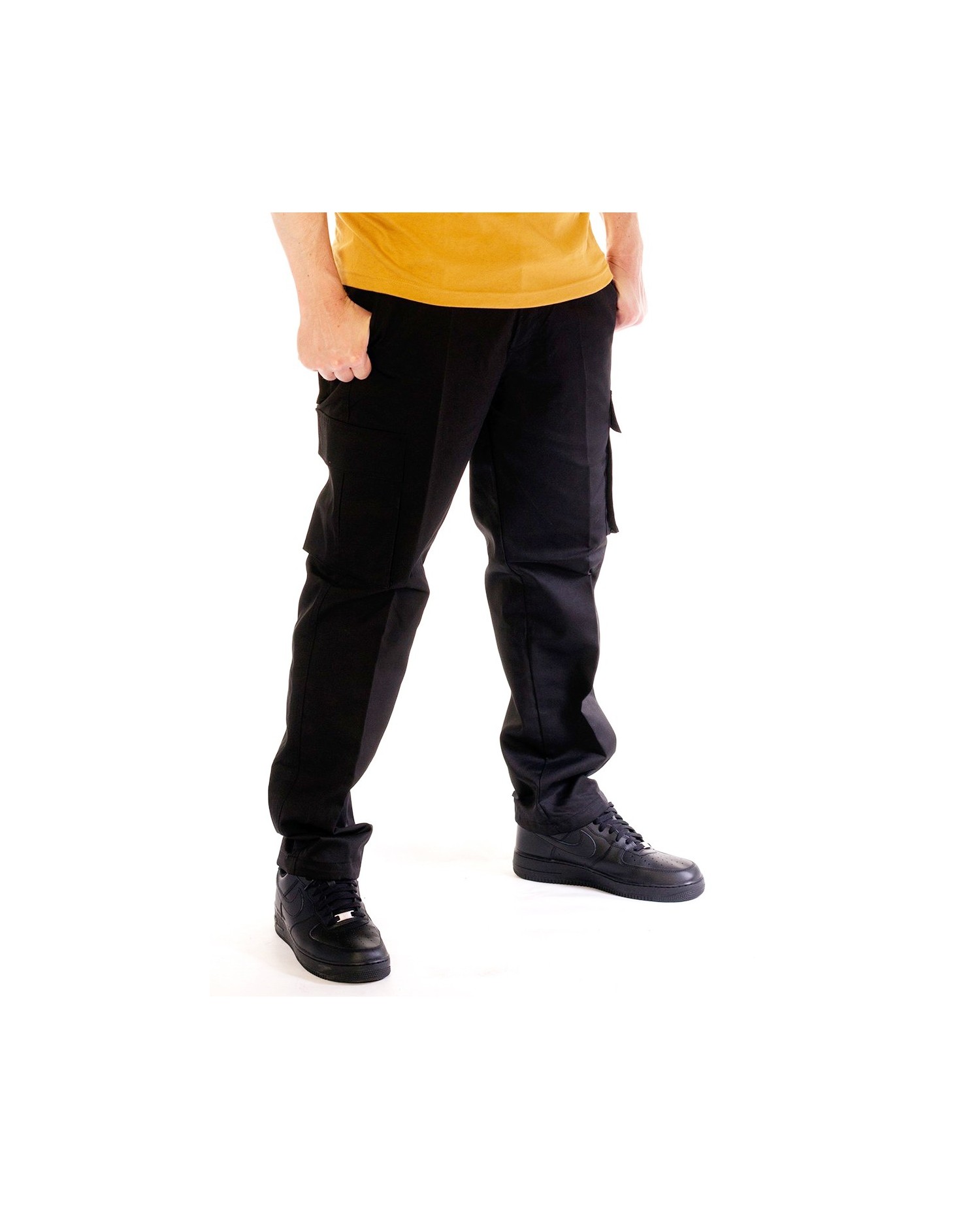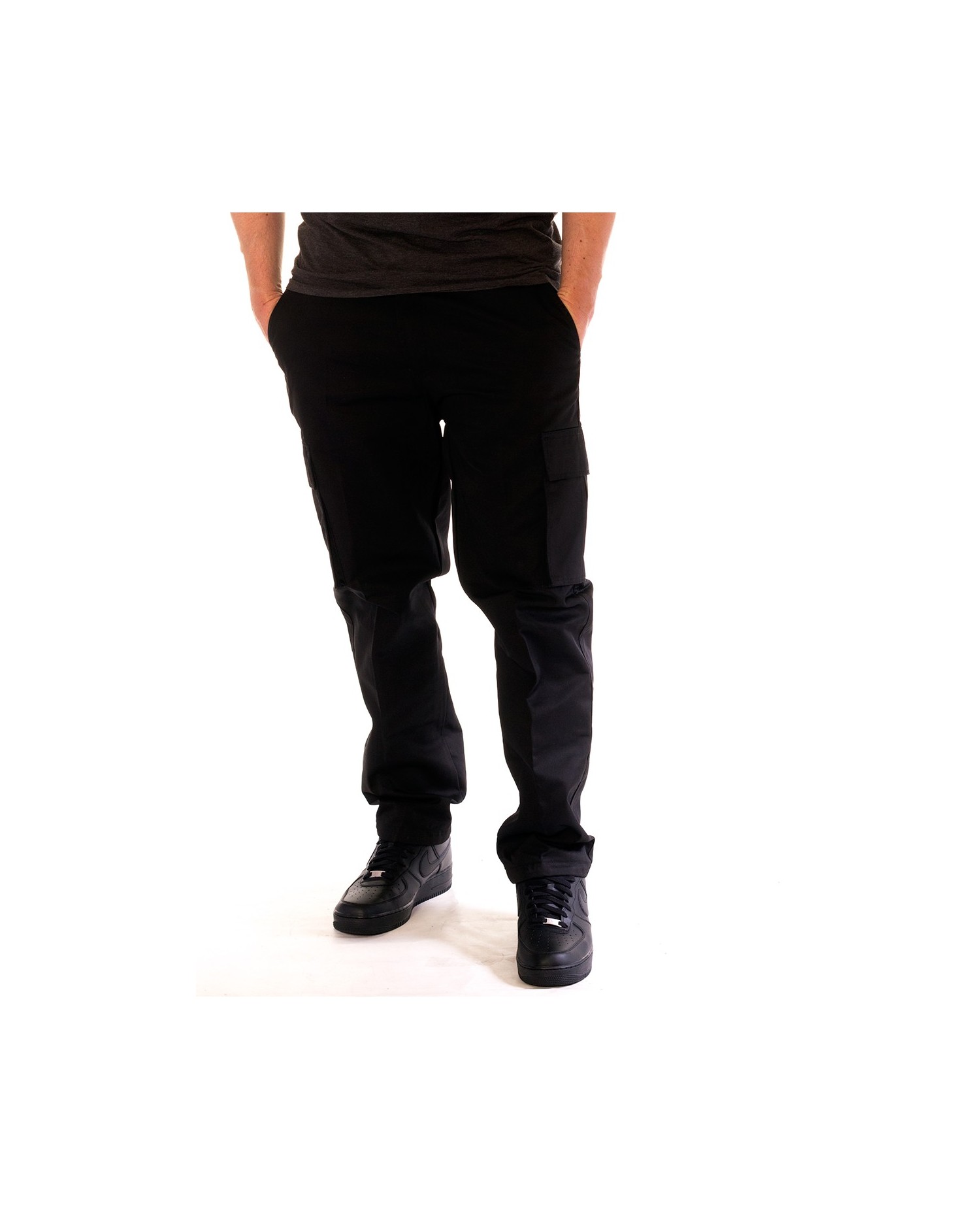 Cargo bukserne fra det amerikanske streetwear brand Access Apparell er sorte med sort canvas bælte. Cargo bukser giver et stærkt, maskulint look , er behagelige og praktiske med de rummelige sidelommer.