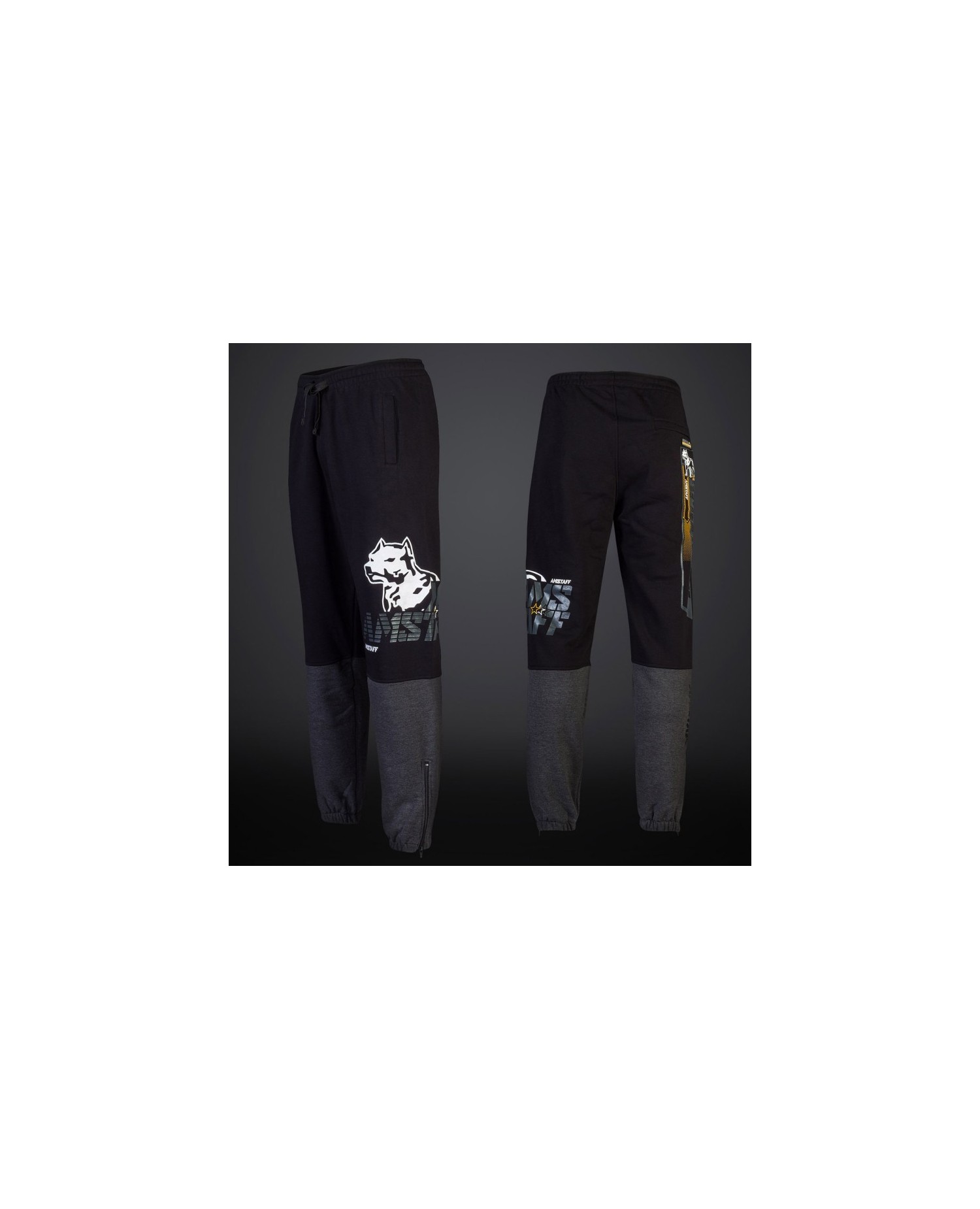 Iøjnefaldende og sporty sorte/grå Sweatpants fra Amstaff med cool brandlogo og praktisk lynlåsbaglomme.