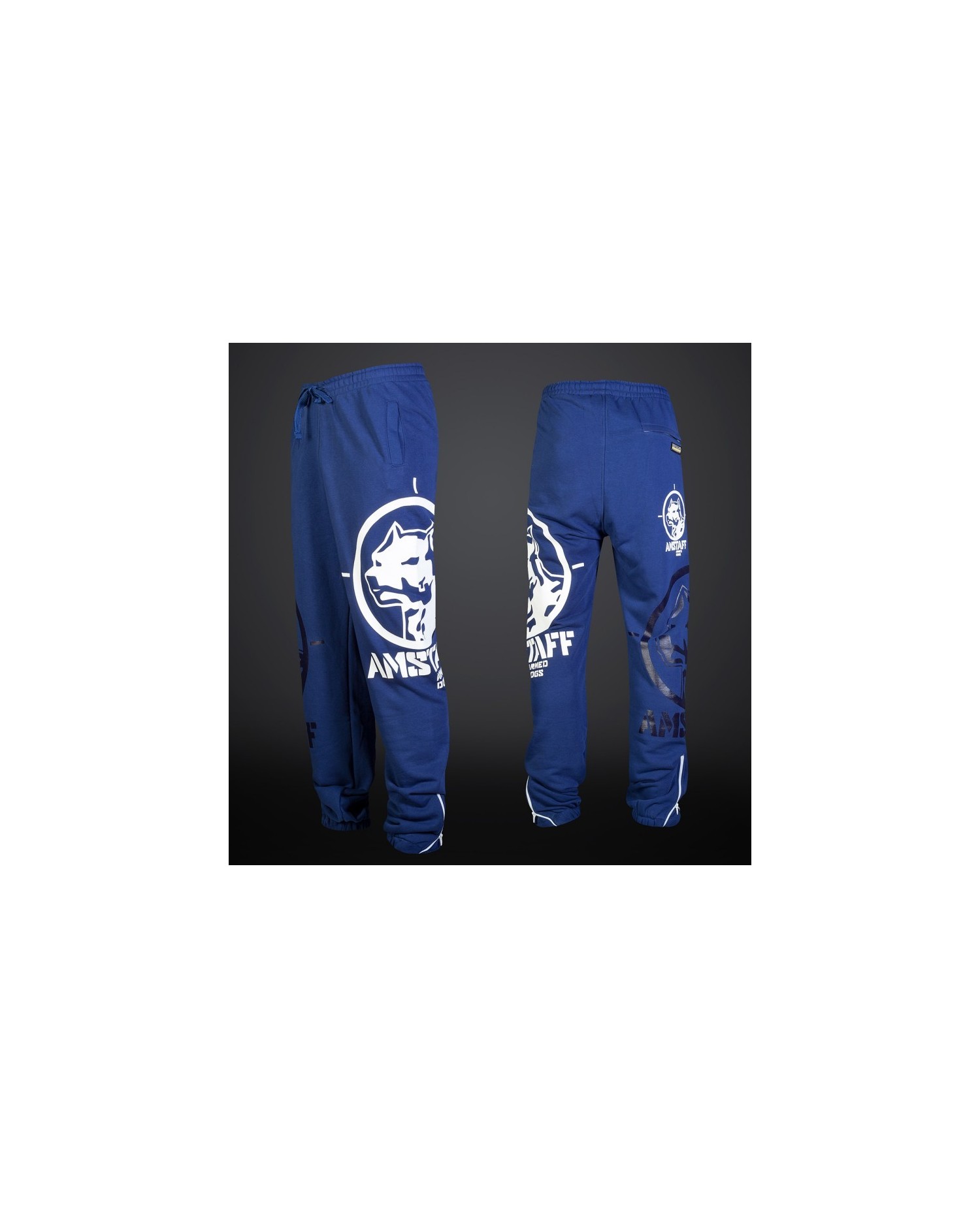Iøjnefaldende og sporty blå Sweatpants fra Amstaff med cool brandlogo og praktisk lynlåsbaglomme.
