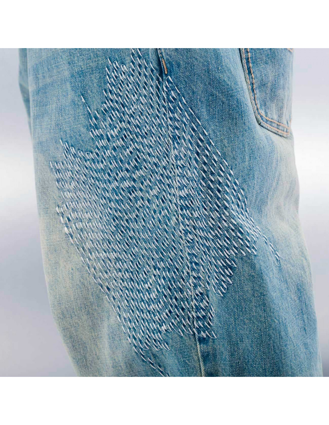 Et street, stilet og baggy look sikrer DNGRS hiphop brandet med de her lyseblå stitchede jeans.