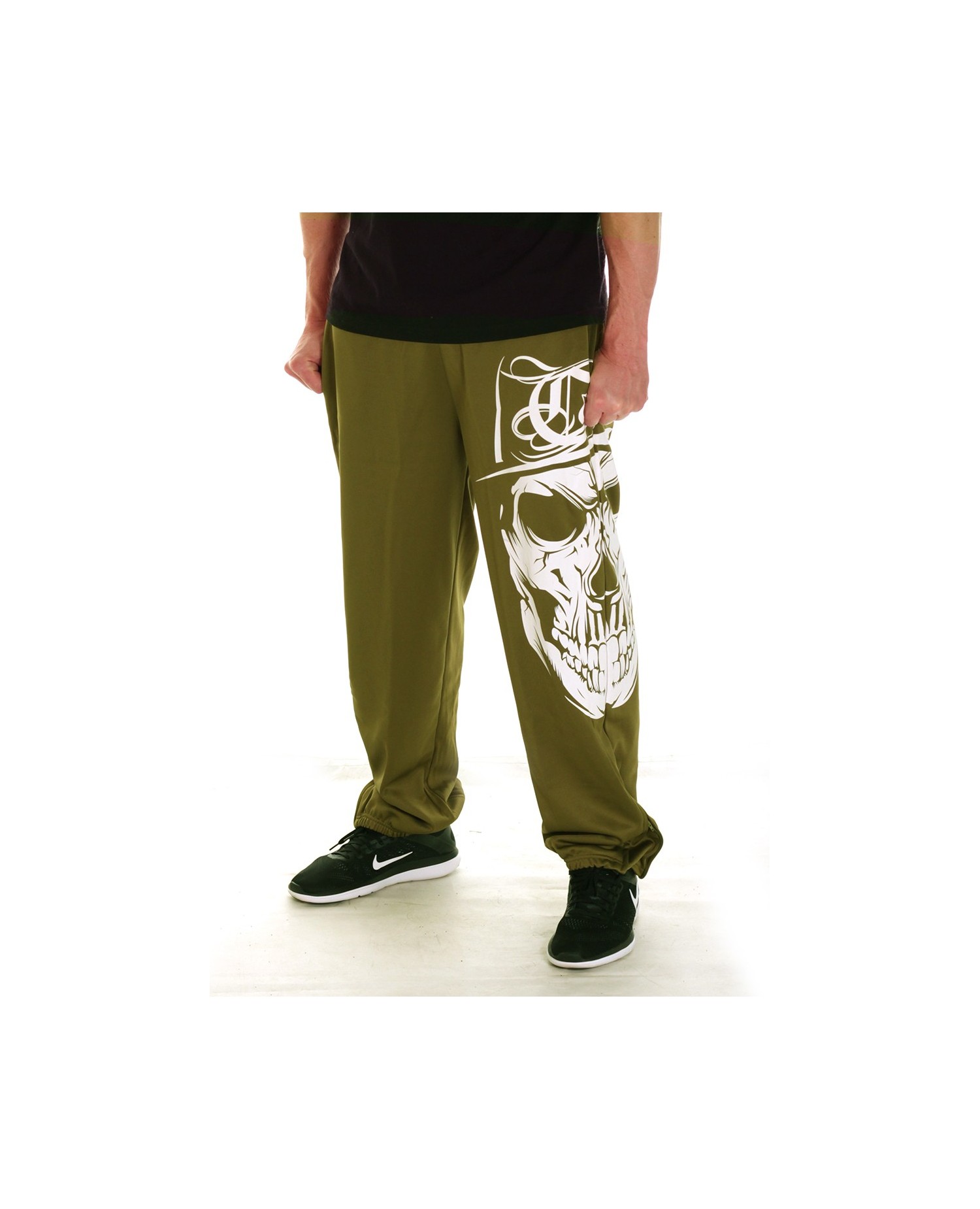 Cali Skull Sweatpantsene er fra BSAT's La Onda Kollektion. BSAT er et trendy hiphop tøjmærke med solide rødder i HipHop Kulturen. Chicano Art Kulturen, Gangster Rappen og Bronx Hip Hoppen er i brandets DNA. Det er BSAT - Bloood -Sweat and Tears. Cali Skull designet er et bestseller design og vi er glade for, at sweatpantsene nu også findes i stærk militant olivengrøn. Stilen er baggy.