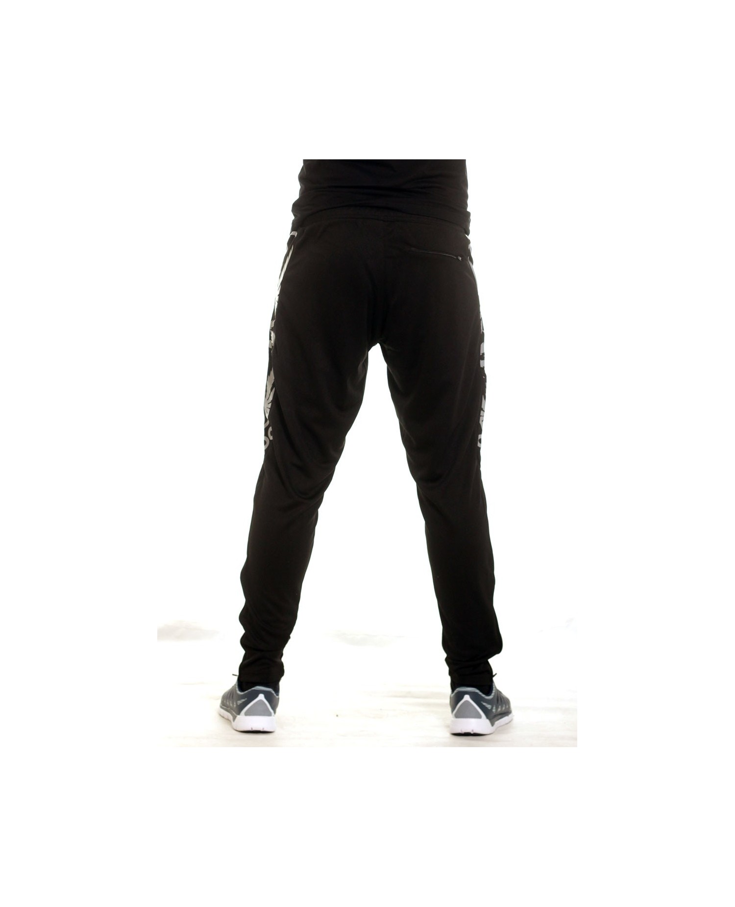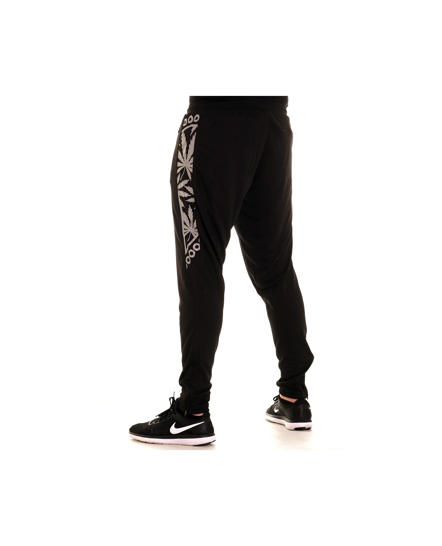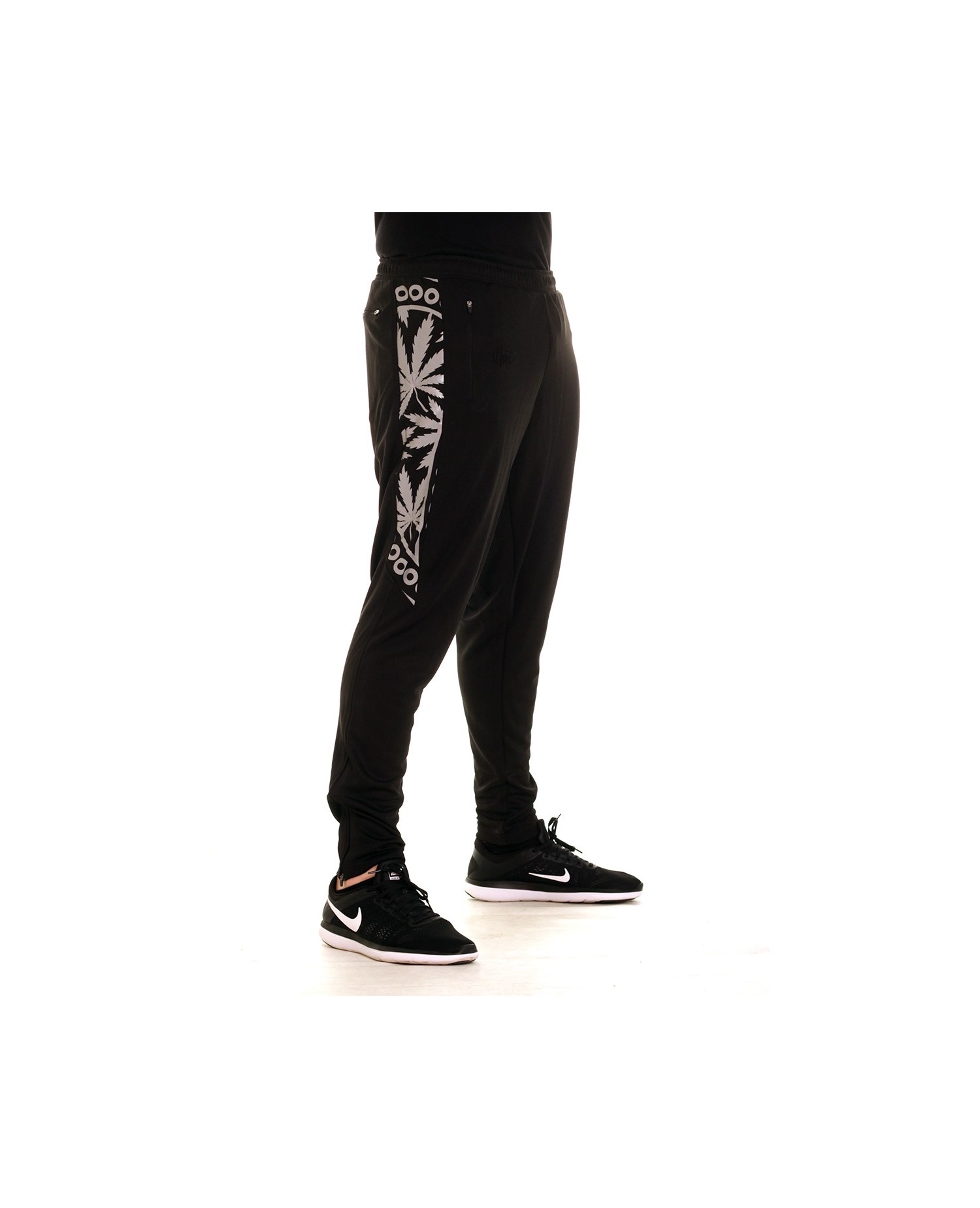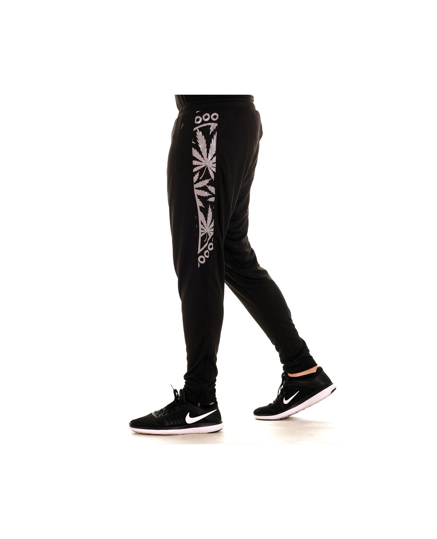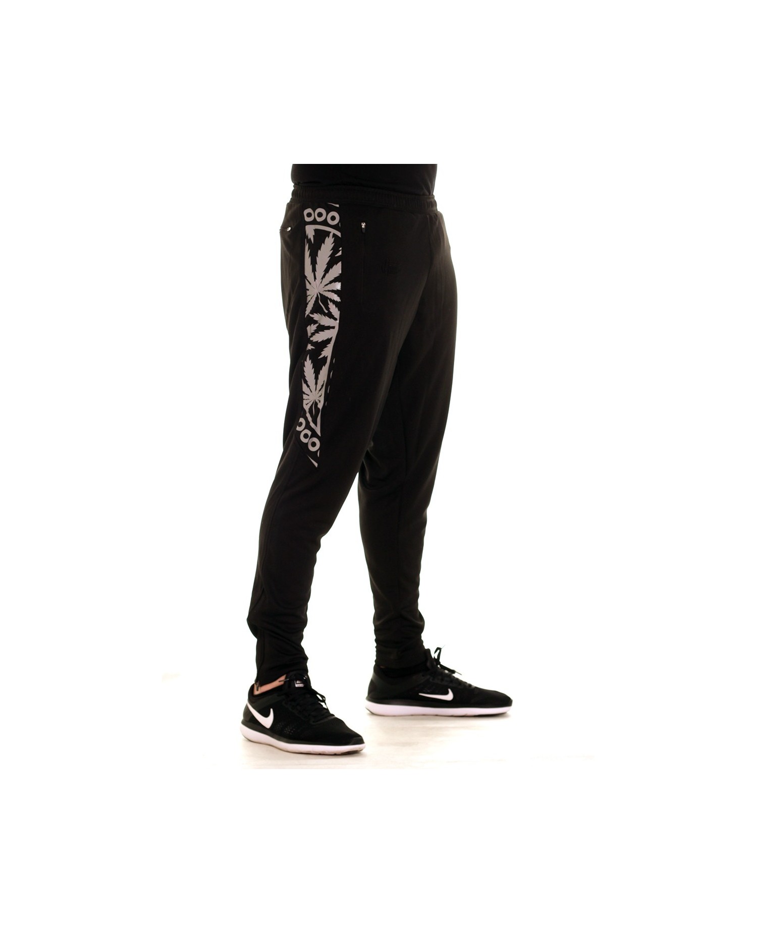 Panther Alarm. Så har vi fået Panther Track Pants fra HipHop tøjmærket BSAT. Og de er supercoole og passer perfekt til en moderne livsstil, hvor grænserne mellem urban streetwear og sportswear er flydende. I RudeCru kan vi se trendsættende Rap og RnB artister og store sportsstjerner skinne i Panther track pants - og alle andre, der er nede med en street og sporty tøjstil. BSAT Panther Track Pants har karakteristiske sidepaneler, 2 lynlåslommer, lynlåse forneden og en lynlåslomme bagpå. Sidepanelerne på disse trendy trackpants er printet med sølv Weed blade.