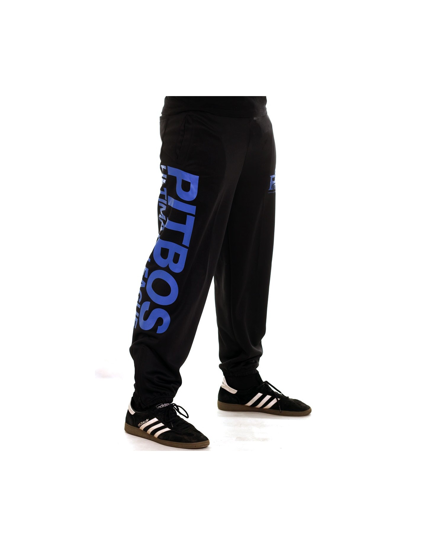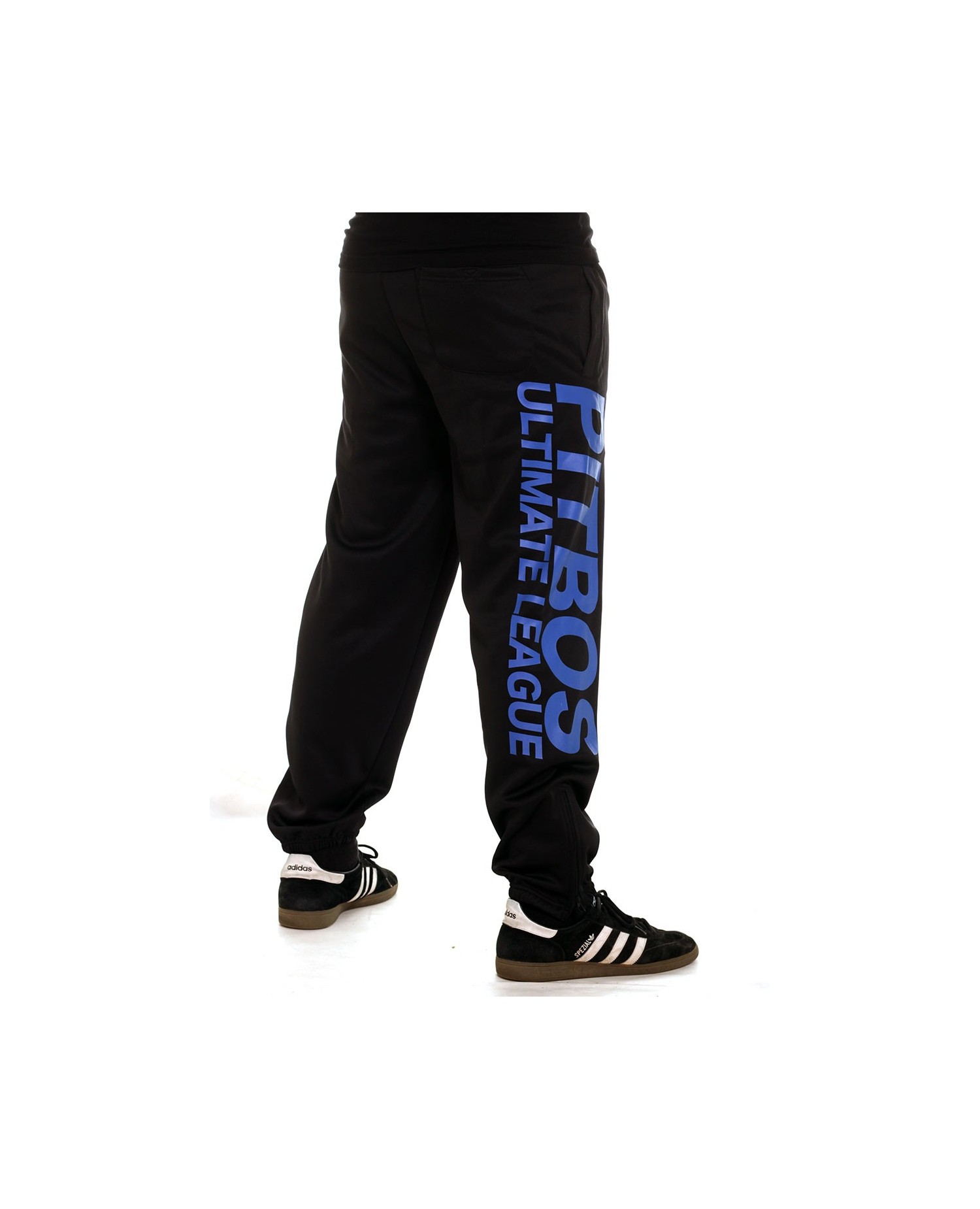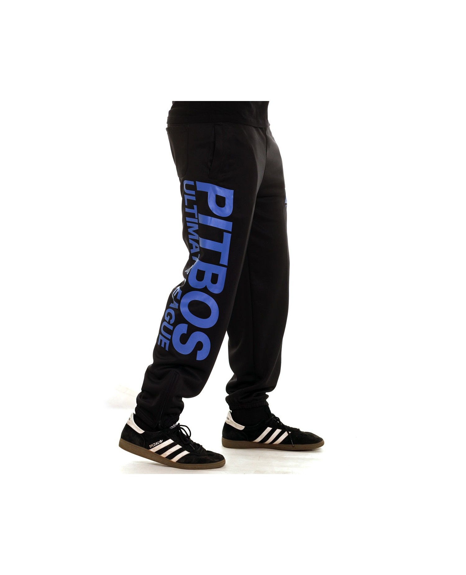 Pitbos Ultimate League Sweatpants er sorte med et stort blåt brandlogo print ned af højre ben og et mindre logo på venstre hofte. Pasformen er super behagelig. De er forsynet med sidelommer og baglommer. Buksen har ligeledes praktiske lynlåse ved anklerne og indvendigt snøretræk, som kan give den perfekte pasform. Pitbos er et stærkt street rebelbrand.