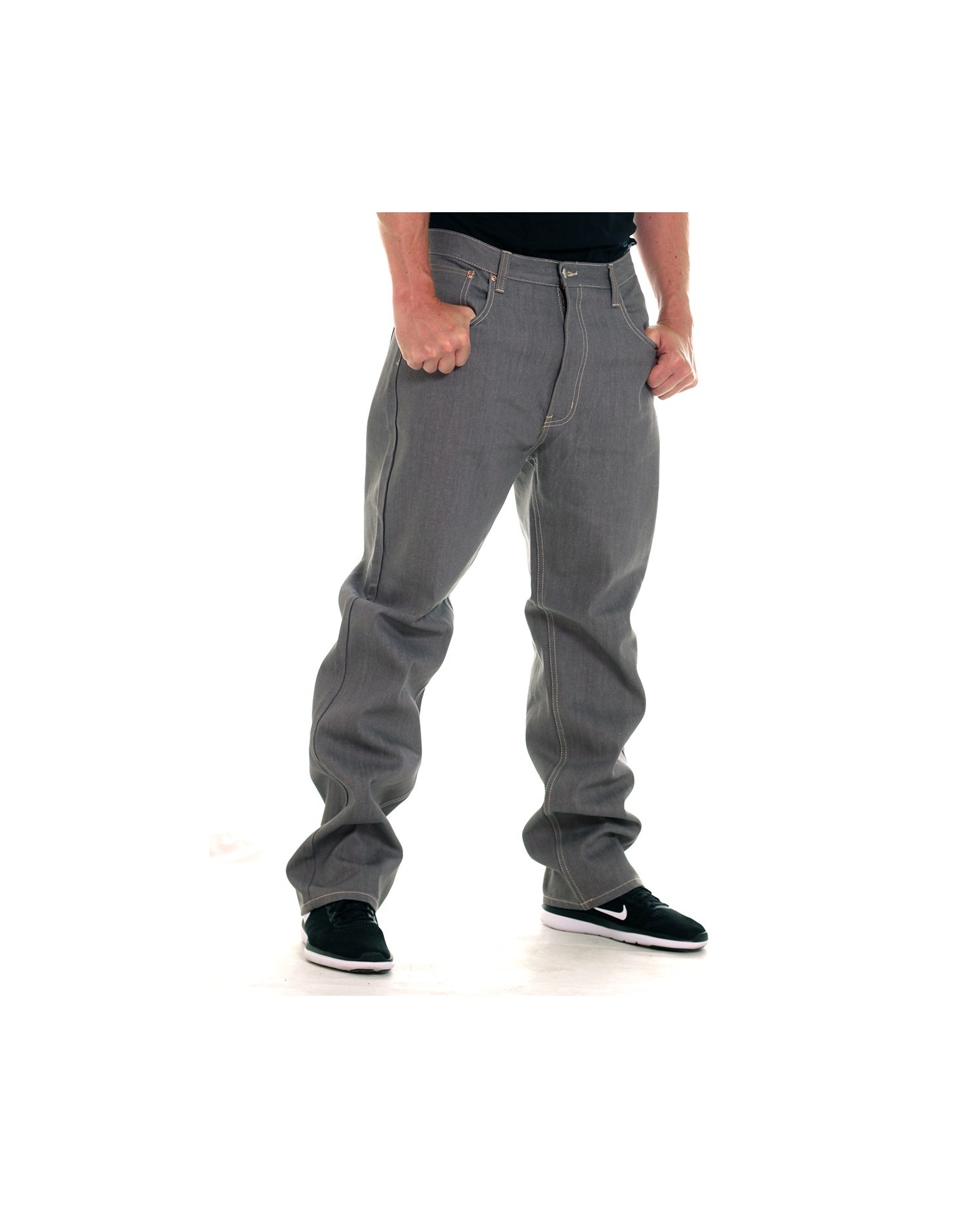 Straight raw denim Jeans i lysegrå fra US streetwear brand Access Apparel.