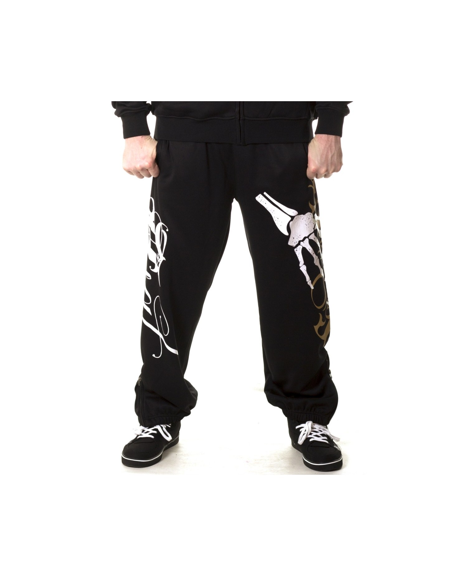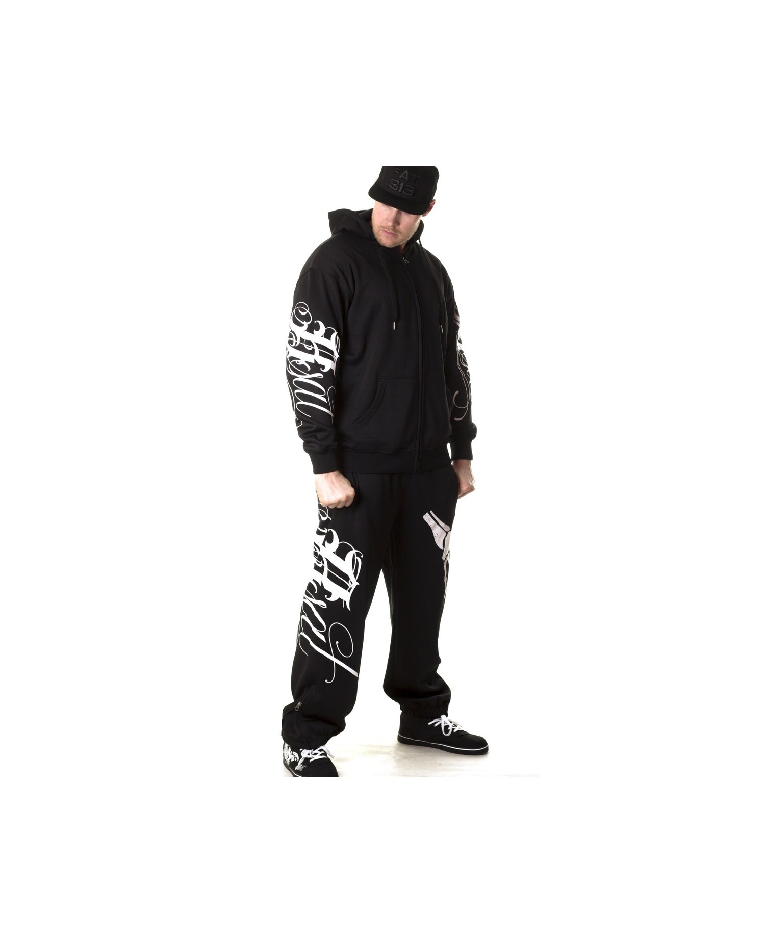 Iøjnefaldende og kreative Cali Street Sweatpants fra BSAT. Med kunstnerisk metallisk guldskrift står Cali Street skrevet skråt ned langs venstre ben, mens det fastholdes af et dyrisk skull greb i hvidt og gråt. Den kreative artistiske stil fortsætter ned langs høre ben med et hvidt BSAT Script Art logo. Dette er legende, forfinet, smukt og imponerende og passer perfekt til det gyldne Cali Street. Bag på venstre ben er vævet et hvidt BSAT logo. Bukserne har sidelommer, 2 baglommer med velcro lukning og lynlås ved anklerne. Til at sikre den rigtige pasform har bukserne et sort indvendigt snøretræk. BSAT er et hip-hop og Urban Art streetwear mærke, som især er slået igennem med originale skull produkter og usædvanige chica designs.