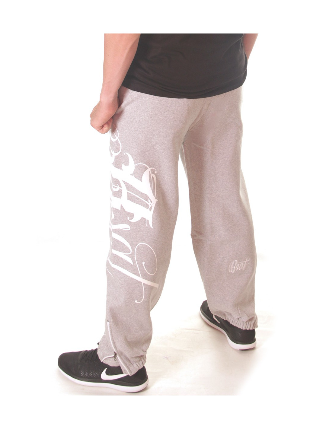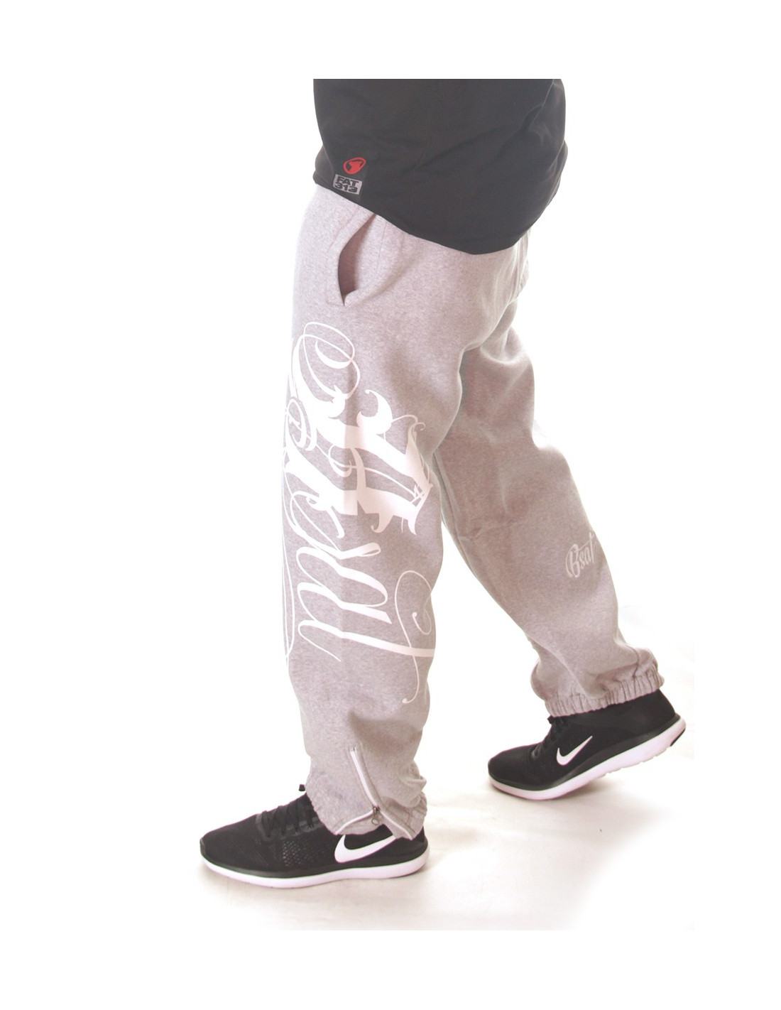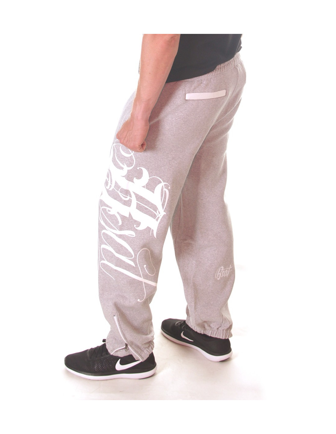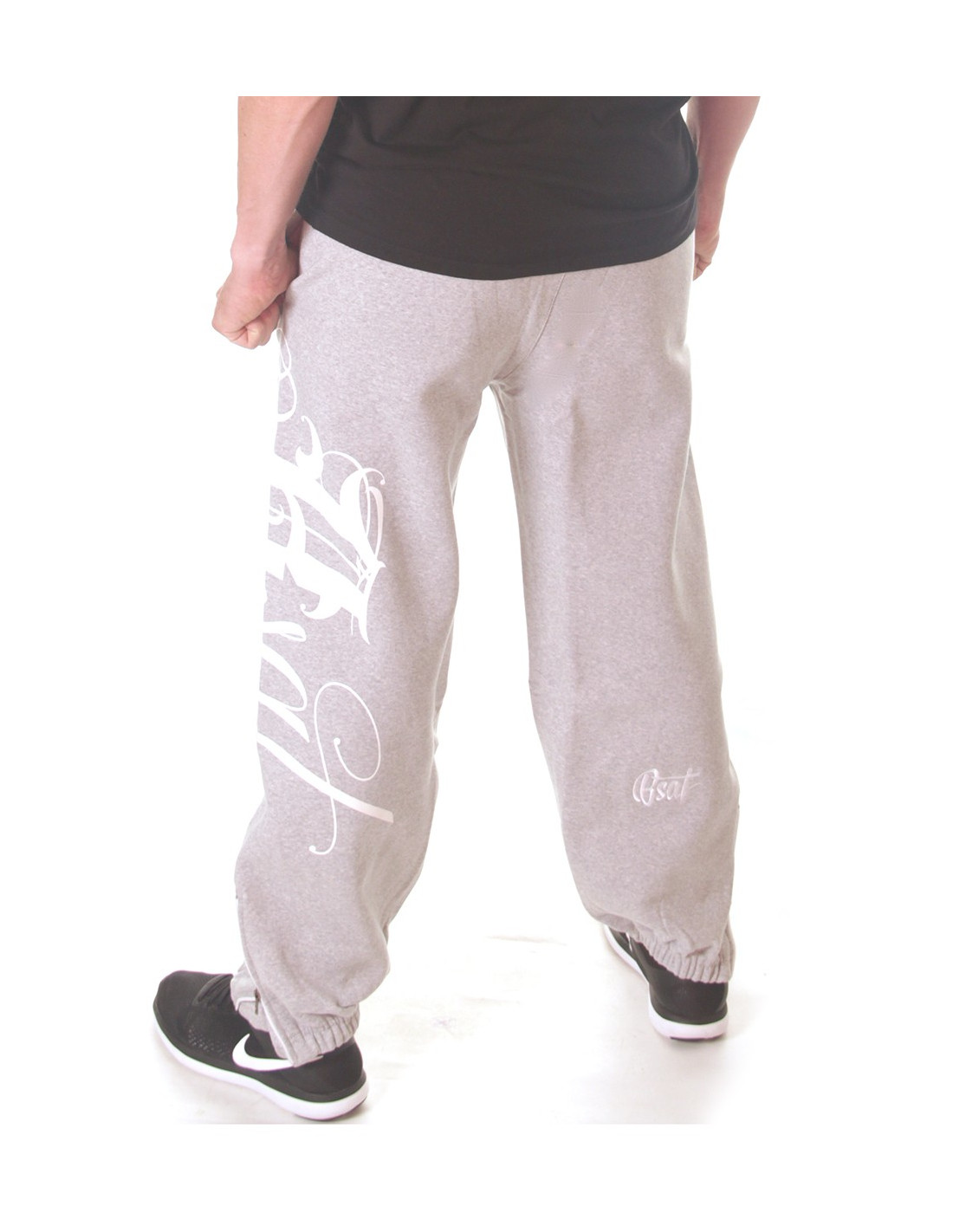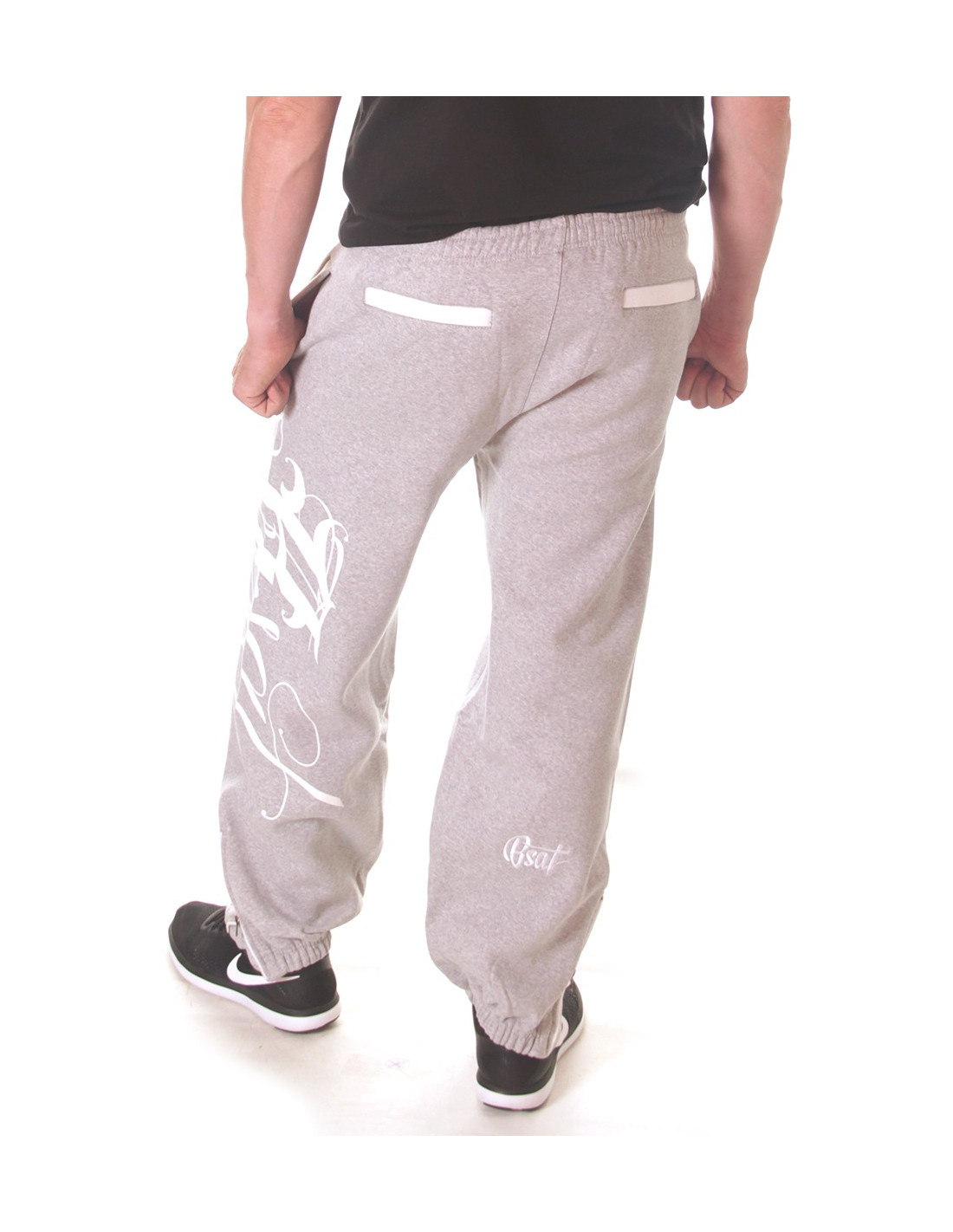Stilfulde, lækre komfortable Fashion Sweatpants fra BSAT. Sweatpantsene er i lysegrå med brandets smukke Art Script logo i hvidt ned af venstre ben og på hætten. Sweatpantsene har sidelommer og 2 mindre baglommer med hvide striber, som giver pantsene kant. Sweatpantsene har et indvendigt snøretræk til at sikre den bedste pasform. BSAT er RudeCru's Urban Art og HipHop RebelFashion brand, inspireret af StreetArt, TattooArt og musikscenen.