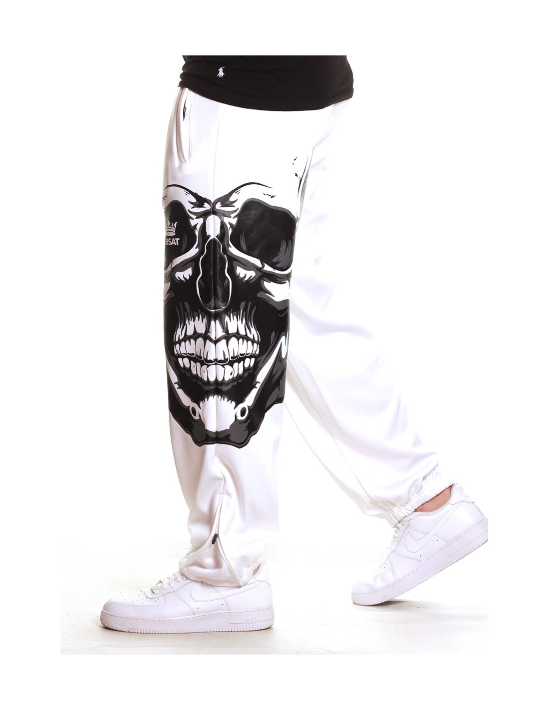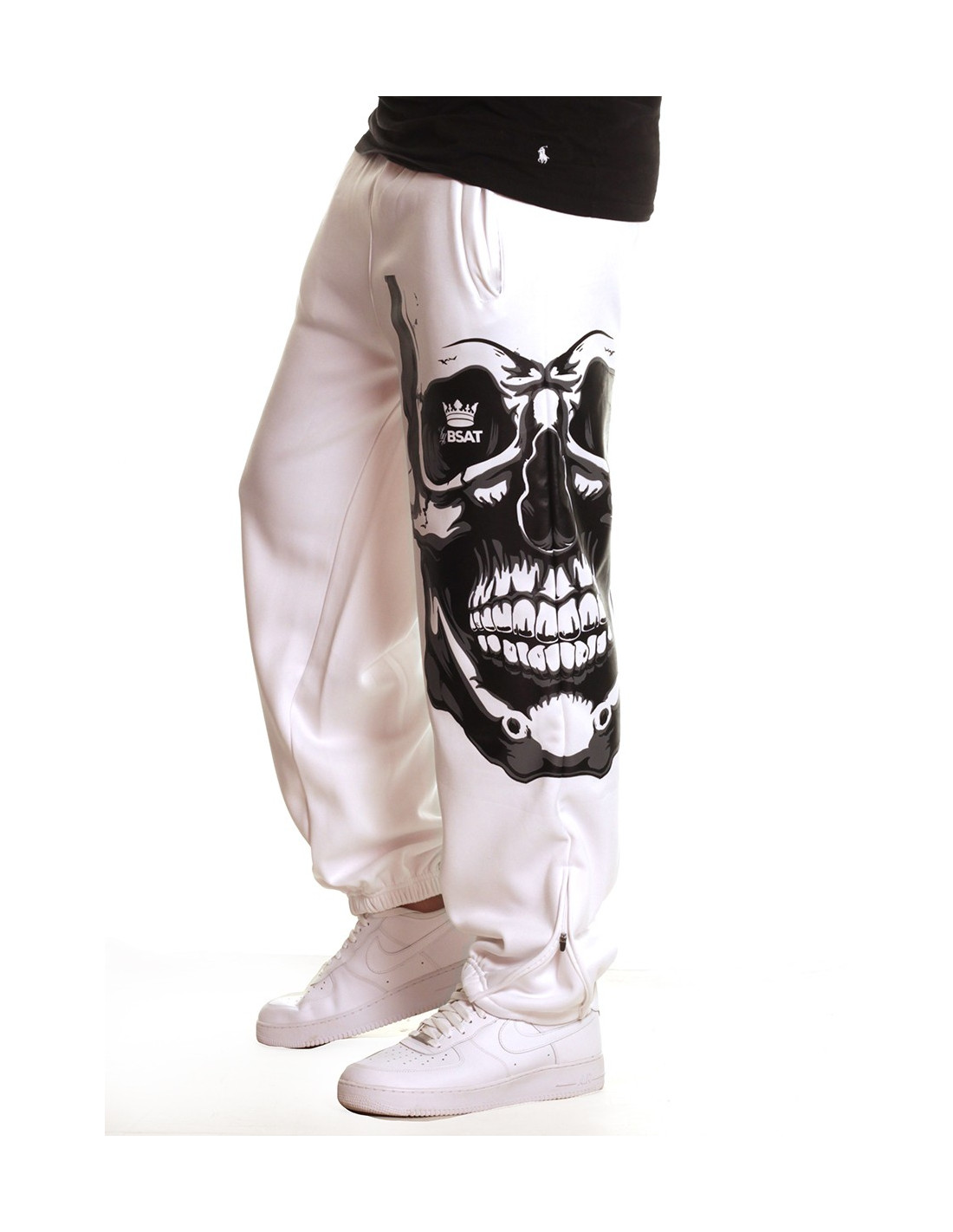 Jaws Skull Sweatpantsene er stilfulde, komfortable og helt unikke. Det specielle Skull snor sig omkring venstre ben. Bukserne har praktiske sidelommer med lynlås og lynlåse ved anklerne. Sweatpantsene har et indvendigt snøretræk til at sikre den bedste pasform. Jaws Artdesign er lige i øjet til alle, der er nede med ChicanoArt og en urban livsstil. Jaws Skull pantsene er fra RudeCru's Urban Art og RebelFashion Brand BSAT, som primært er inspireret af TattooArt, ChicanoArt, StreetArt og Musikscenen.
