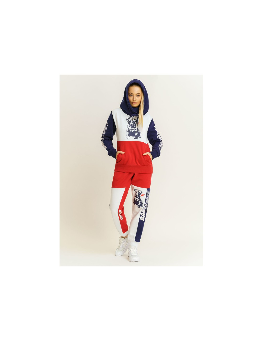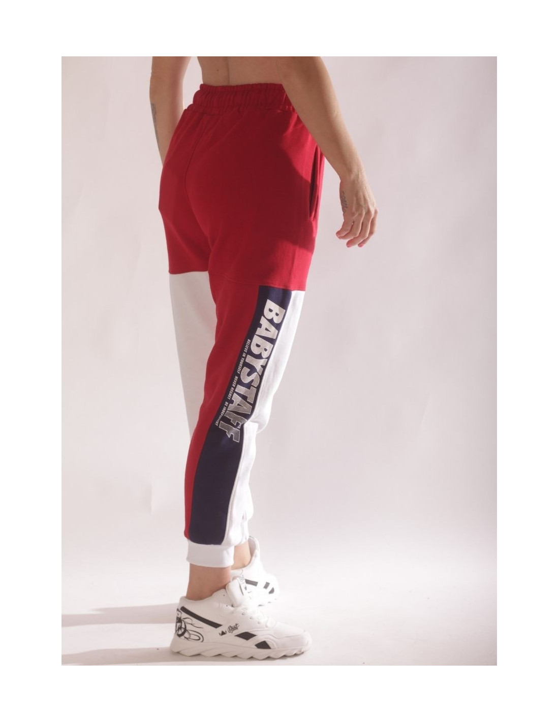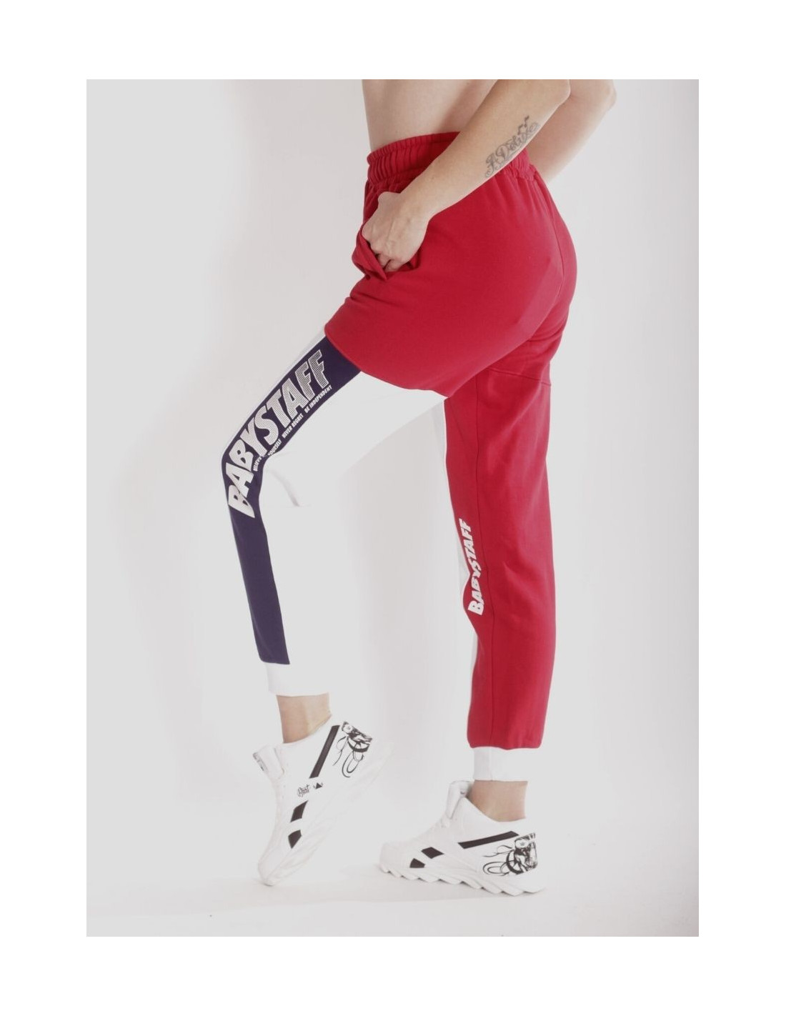 Super coole Sweatpants fra Babystaff i hvid, blå og rød. Den søde lille BrandLogo Puppy er placeret forpå. Bukserne er produceret i 80% bomuld og 20% polyester.