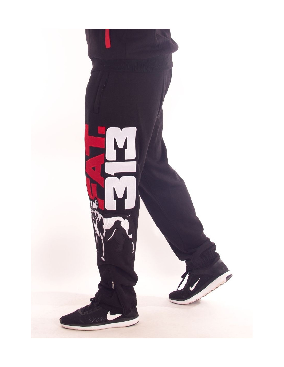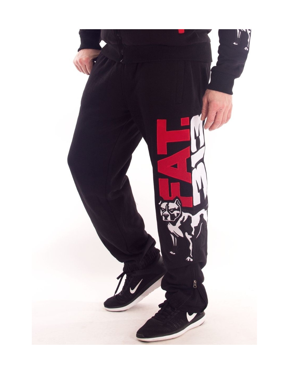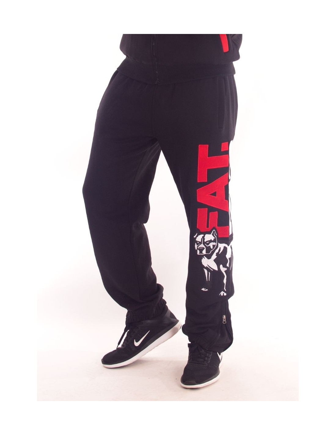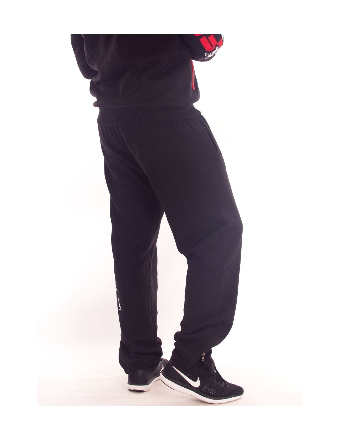 Stærke, sporty, robuste Logo Dog Sweatpants fra vores Premium Fashion Brand FAT313. Sweatpantsene er sorte med det imponerende legend brandlogo broderet i rød og hvid ned af venstre bukseben. Sidelommerne har praktiske lynlåse. Ved anklerne afsluttes bukserne ligeledes med lynlåse. Et indvendigt snørretræk er perfekt til at justere pasformen med. FAT313 har rødder i det urbane storby liv og har sit helt eget udtryk: FAT313 spænder fra designs med sværvægtstunge brandlogo broderier over afdæmpede designs med hundebrand patches til store broderede FAT313 hunde. Fælles for alle designs er, at FAT313 er super stilrent i sine designlinjer, materialerne er lækre og streetwear tøjet er af høj klasse. FAT313 blev skabt af franskmanden Julien Soone, der også stod bag det kendte BullrotWear. Med FAT313 skabte Soon et nyt urban brand, der hurtigt opnåede stjernestatus i mange lande. Især brandets Zip Hoodies, Sweat Pants, T-Shirts og Track Jackets med motiver eller brandlogo er yderst populære. Fat313 har allerede klædt top sportsudøvere på. I 2016 købte RudeCru branndet og vi kunne straks lægge nye spændende fortællinger til brandets historik: I RudeCru glæder vi os således over, at FAT313 er valgt til forskellige filmproduktioner. Det er sindsygt spændende, men ikke overraskende, for FAT313 er et stilsikkert og stærkt valg. Det er et sublimt kvalitets muscle brand med sit helt eget unikke maskuline udtryk. FAT313 ER Premium League.