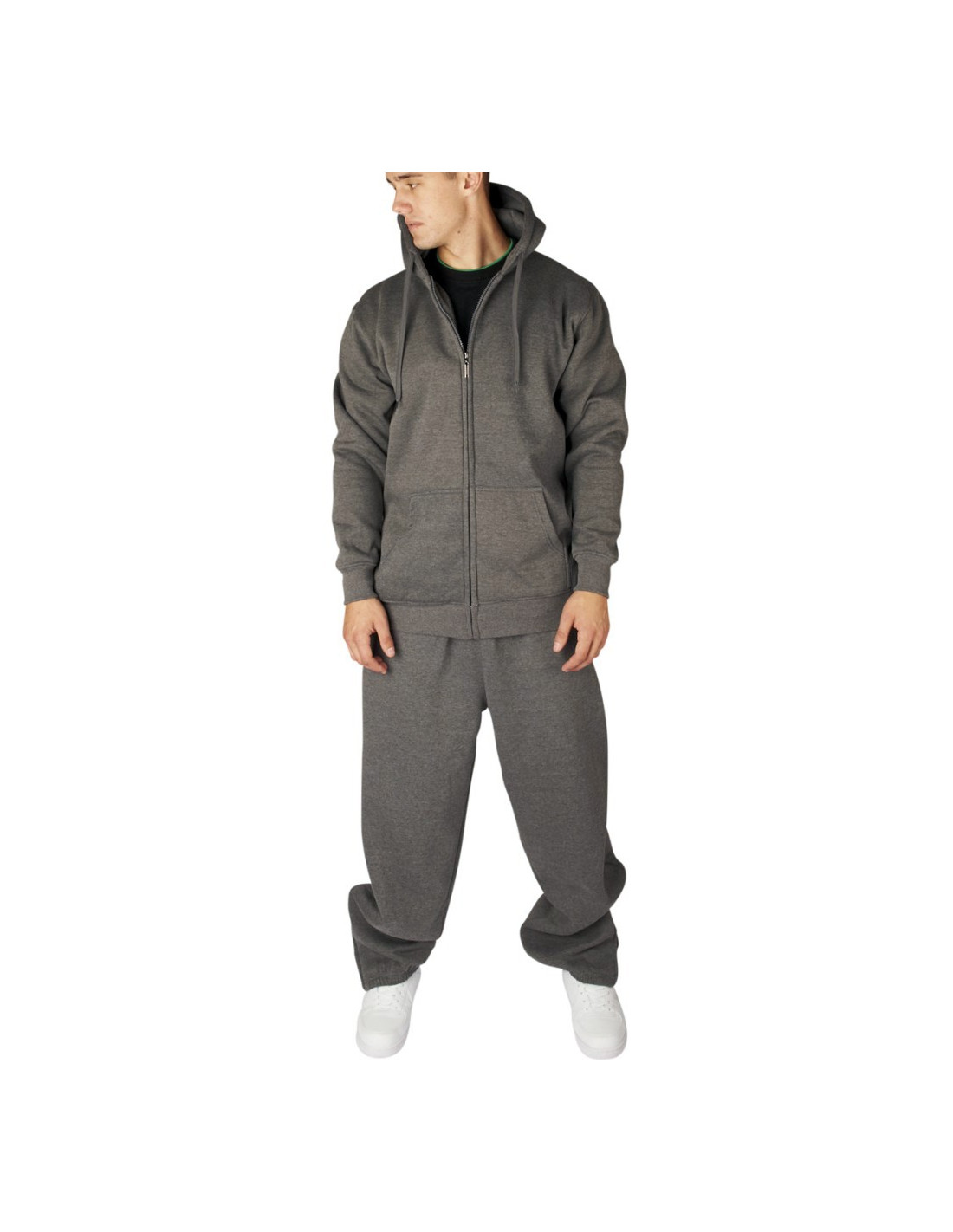 Dark grey plain hoody which matched the same color sweat pants also to be found here in store.