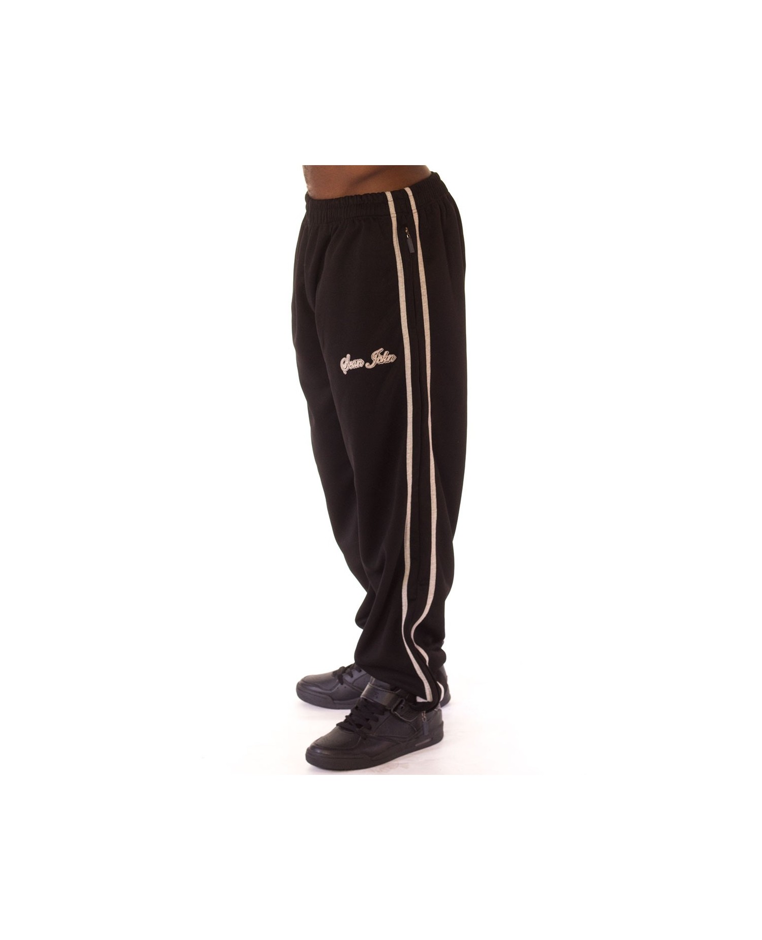 Sporty og stilede sorte sportpants med lysegrå striber og et stichet Sean John brandlogo. Lynlåslommer og lynlås ved anklerne. Det legendariske HipHop label Sean John blev startet af den lige så legendariske rapmusiker Jean Combs. Jean Combs var nok den første, der kombinerede HipHop musikken med svedigt HipHop Design. Sean John blev en mega succes på alle områder, ikke kun økonomisk. Fra 2000-2005 blev Sean John prisnomineret ved CFDA (Council of Fashion Designers of America). I 2004 vandt Sean John prisen som bedste designer af mandetøj. (Men's Designer of the Year). Og det forstår vi godt her på RudeCru. Sean John Designs er i absolut særklasse. Direktøren for RudeCru har på sin seneste rejse til USA købt cool Sean John streetwear, som du nu kan købe her i shoppen.