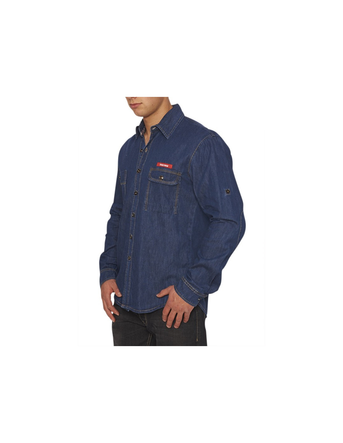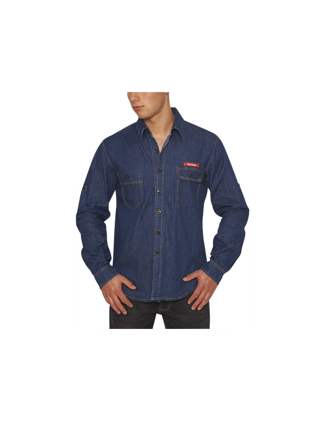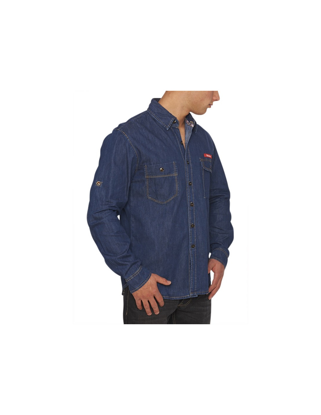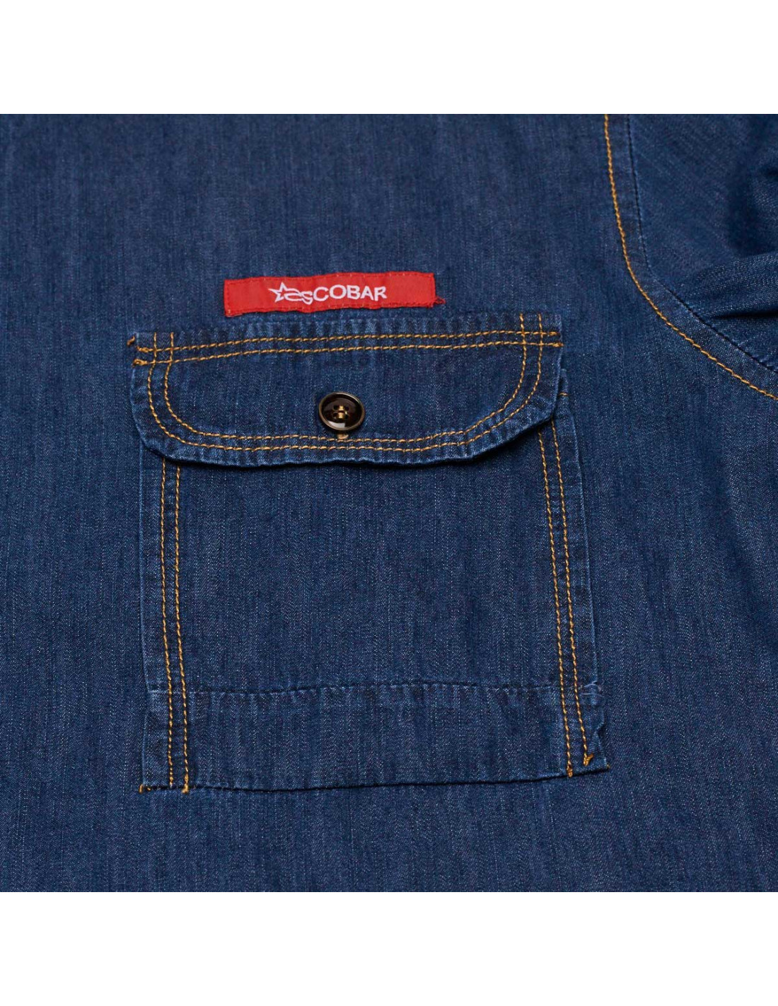 Dark blue denim shirt from Escobar. Good fitting with 2 breastpockets - 100% cotton. The model in the picture is wearing a size L.