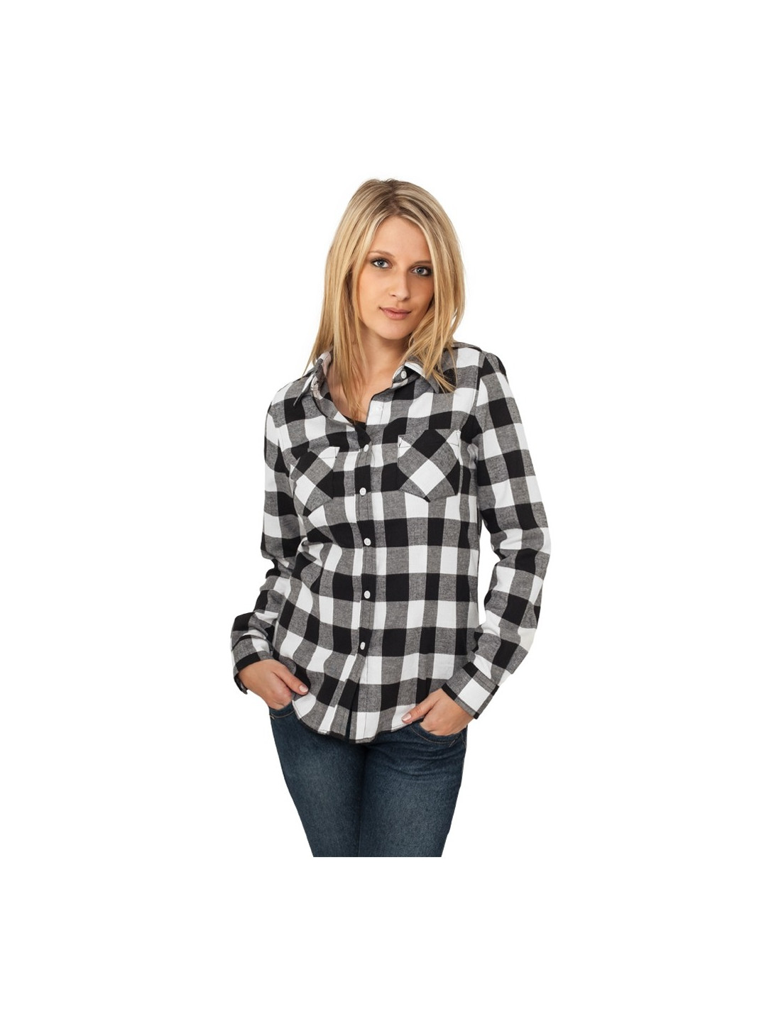 Urban Classics Ladies Checked Flanell Shirt blk/wht