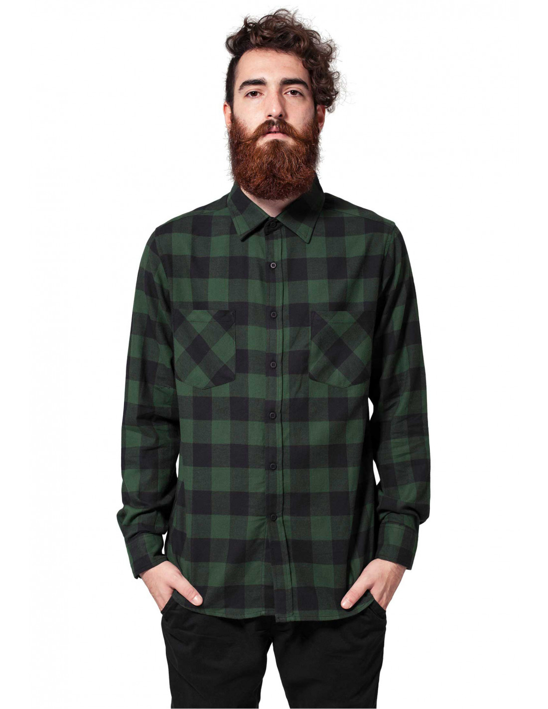 Super behagelig, cool og afslappet urban skjorte i sort og grøn tern fra Streetwear Brandet Urban Classics.