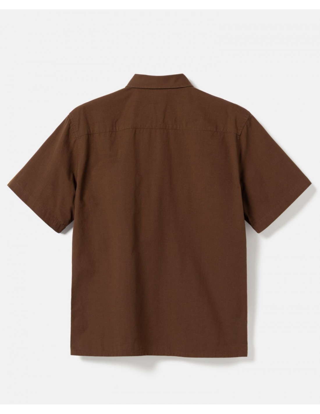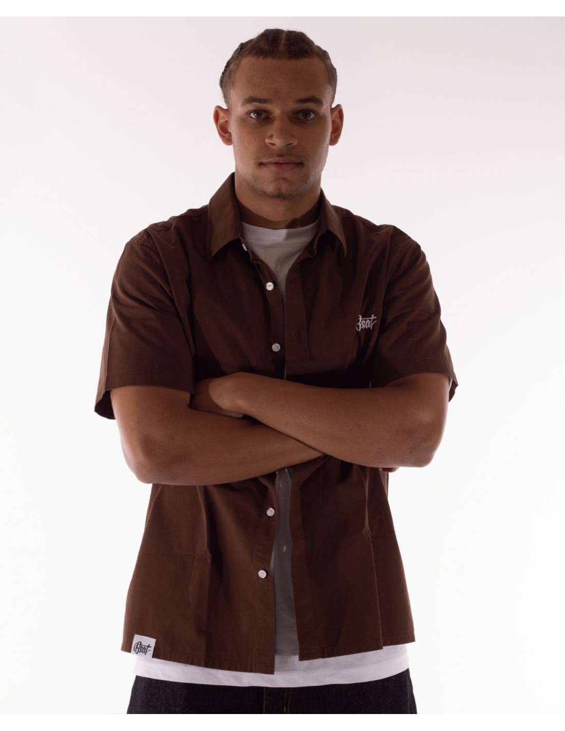 BSAT Studio Short Sleeve Shirt – Solid Brown er en kortærmet skjorte i et struktureret bomuldsstof med tydelig tekstur og et solidt brunligt udtryk. Silhuetten er afslappet, men skarp – perfekt til varme dage med stil.
