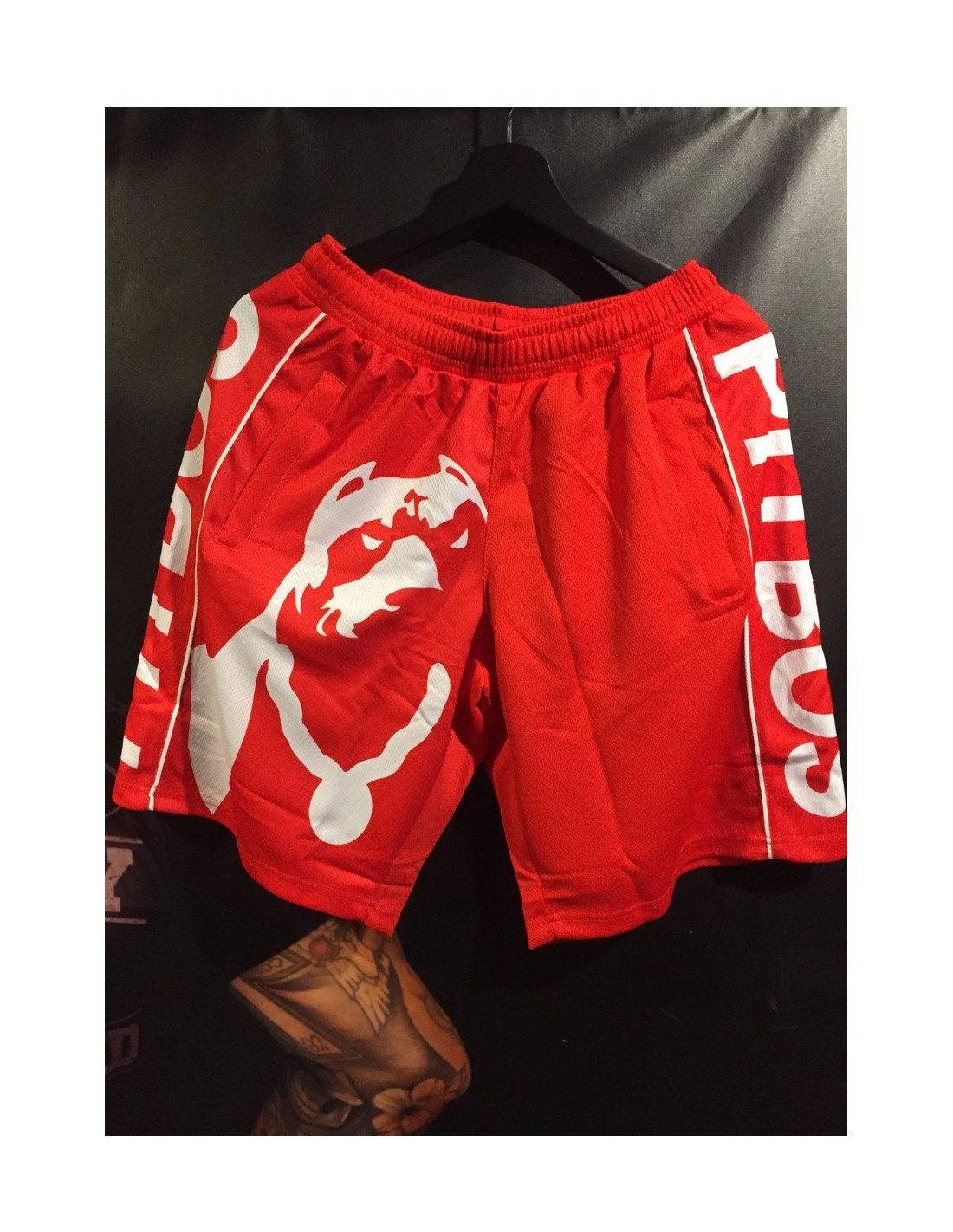 Rebelbrandet Pitbos5.515 lancerer de populære Sportwear Shorts i rød. Den charmerende logohund og brand navnet PITBOS er holdt i hvidt. Sidepanelerne er indrammet af hvide striber, som giver shortsene et ekstra fit look. Shortsene er lavet i et luftigt mesh materiale, som er perfekt til workout. Shortsene kan selvfølgelig også bruges som urbane fritids- og sommer shorts. Så #BarePåMedHunden