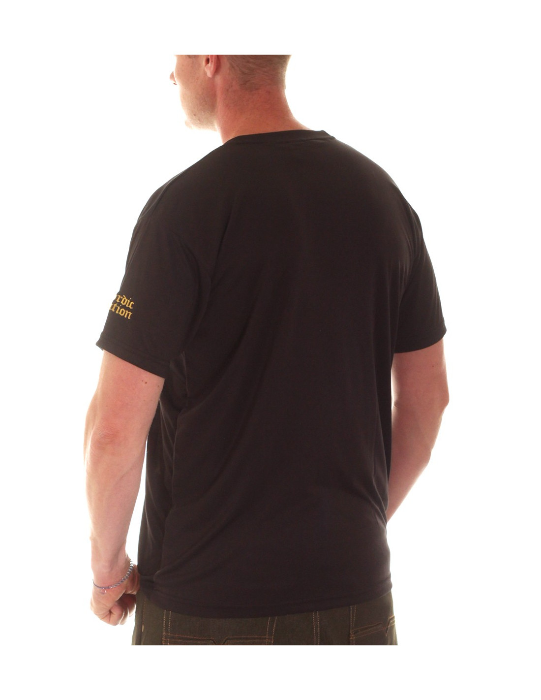 Gungnir Warrior T-Shirten fra Nordic Worlds er inspireret af den Nordiske Mytologi, hvor Gungnir er et magisk våben, skabt af dværgene. Loki giver det magiske våben til Odin. Gungnir rammer plet hver gang, præcis som Thor's hammer Mjølnir. Samtidig er Gungnir trofast og vender altid tilbage til Odin. Designet er maskulin og understøtter den maskuline krop på bedste vis. Et broderet logo er placeret på venstre ærme. Nordic Worlds er et tøjmærke, som rykker den maskuline urkraft fra vikingetiden ind i moderne trendy designs. Nordic Worlds er maskulin, stærk og sporty og T-Shirten er fremstillet i et cool og ultralet polyester materiale, som minder meget om det, de fleste kender fra sportswear.