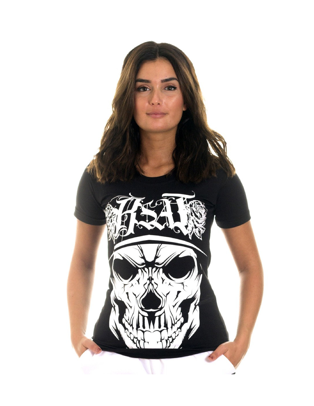 Rose Cali Skull T-shirten har et kunstnerisk rose brandlogo ovenover brandets skull. Det er smukt og cool - et ægte RebelBabe design. BSAT er RudeCru's Urban Art og HipHop RebelFashion brand, inspireret af StreetArt, TattooArt og musikscenen. T-Shirten er i bomuld med stretch.