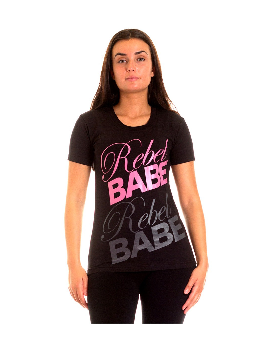 RebelBabe T-Shirten er fra RudeCru's Rebelfashion brand BSAT. T-Shirten er i sort bomuld med stretch. RebelBabe står skrevet i pink og grå på brystet. Logoet er broderet med sølvtråd. BSAT er vores Urban Art og HipHop brand, inspireret af StreetArt, TattooArt og musikscenen.