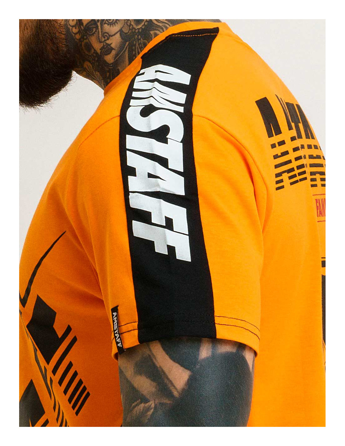 Cool T-shirt i fed orange farve. Stilfuldt brandlogo trykt på forsiden og cool brand logo print på bagsiden. Klassisk rund hals, Behagelig pasform. Materiale: 100% bomuld