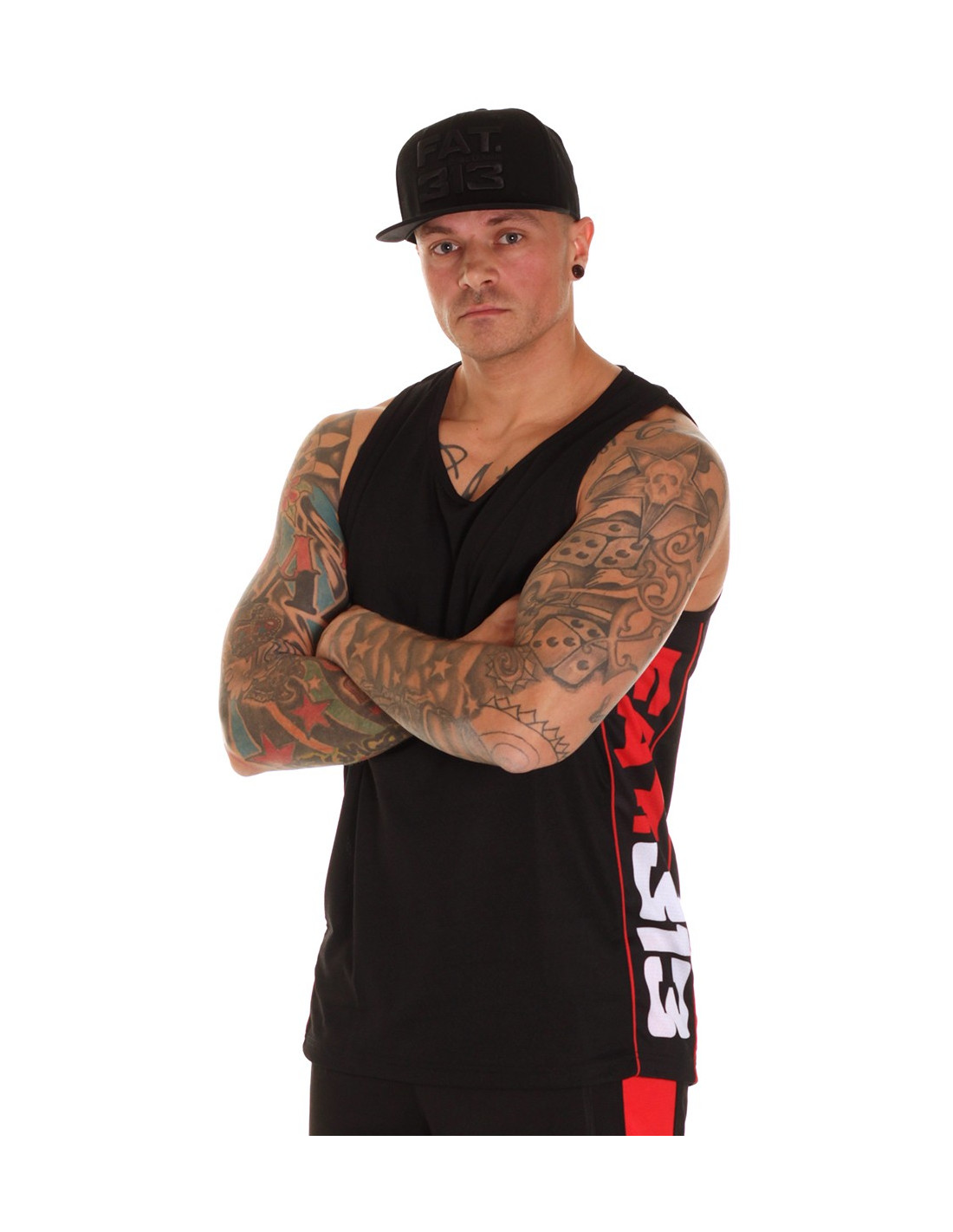 #BurningHot med FAT313! FAT313 Signature Tanktop er sort. Det samme gælder for sidepanelerne, som er indrammet af smalle røde striber. Brandnavnet FAT313 i rød og hvid udfylder begge sidepaneler. Designet er sporty og stærkt og lavet i et luftigt mesh materiale.