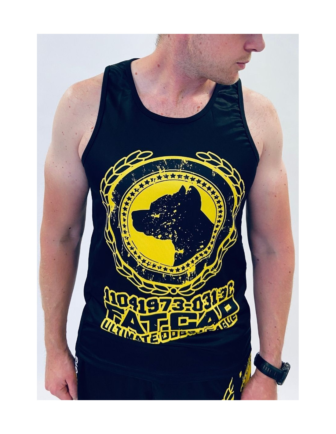 Toplækker sporty TankTop fra Premium Fashion Brandet FAT313. På brystet troner et indtagende FAT313 Art Work, mens brandets svedige Forester logo er broderet i hvid og gul bagpå. Tank Toppen er produceret i sports polyester og er lige perfekt til både varme dage og til Work Out. FAT313 er et eftertraget brand, af både topatleter og aktive mænd verden over.