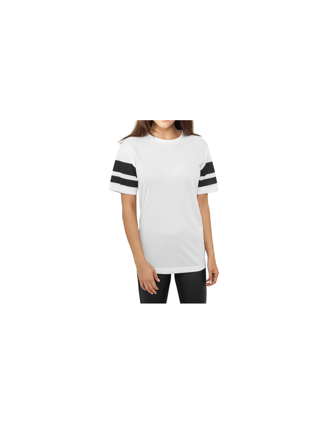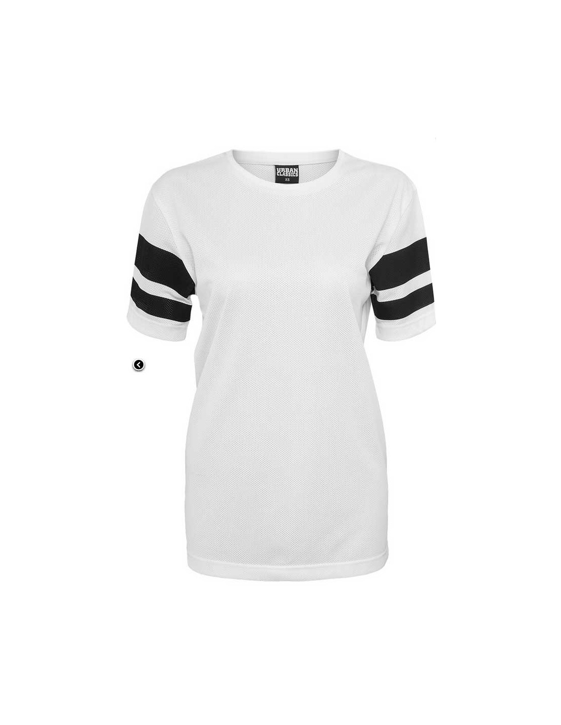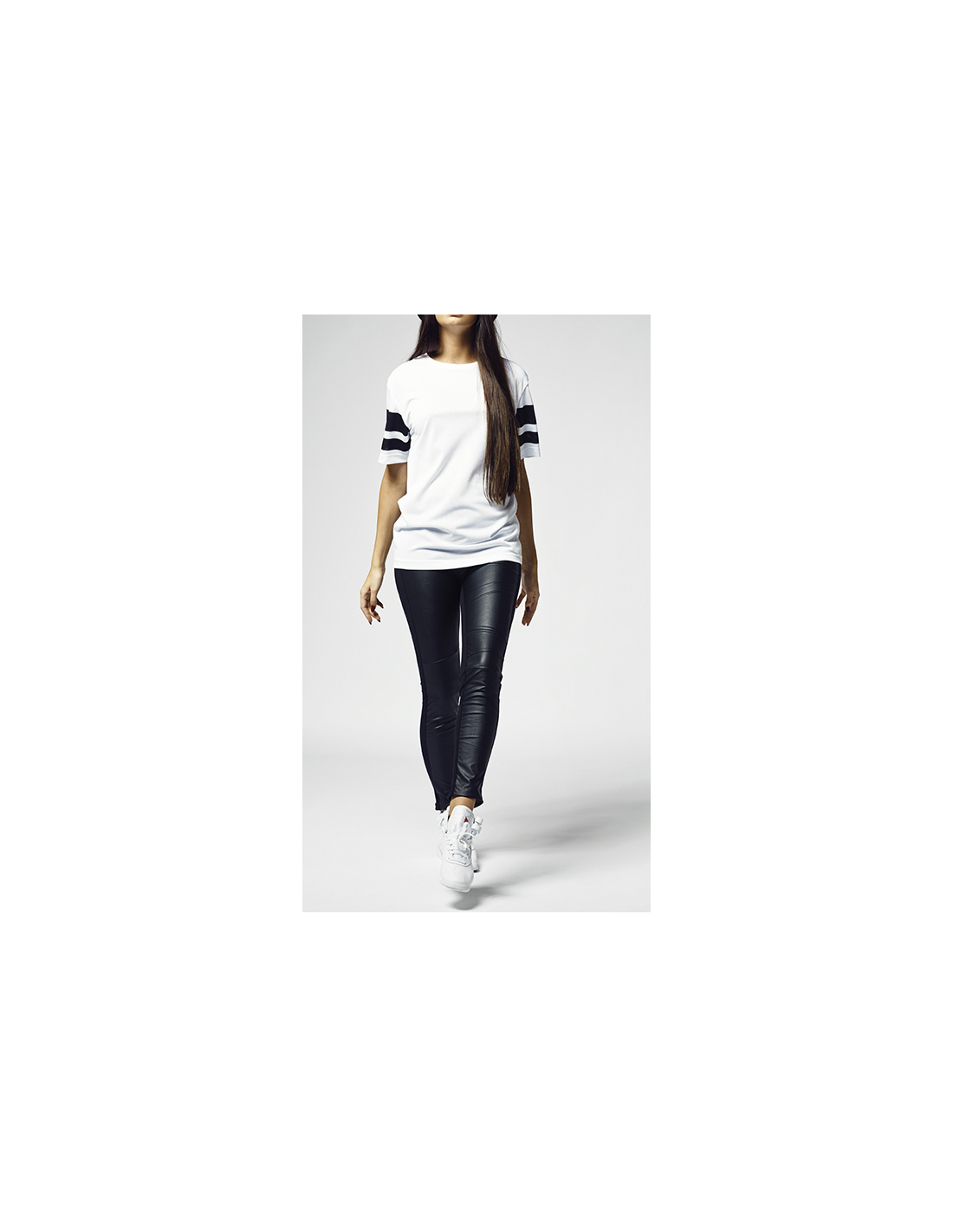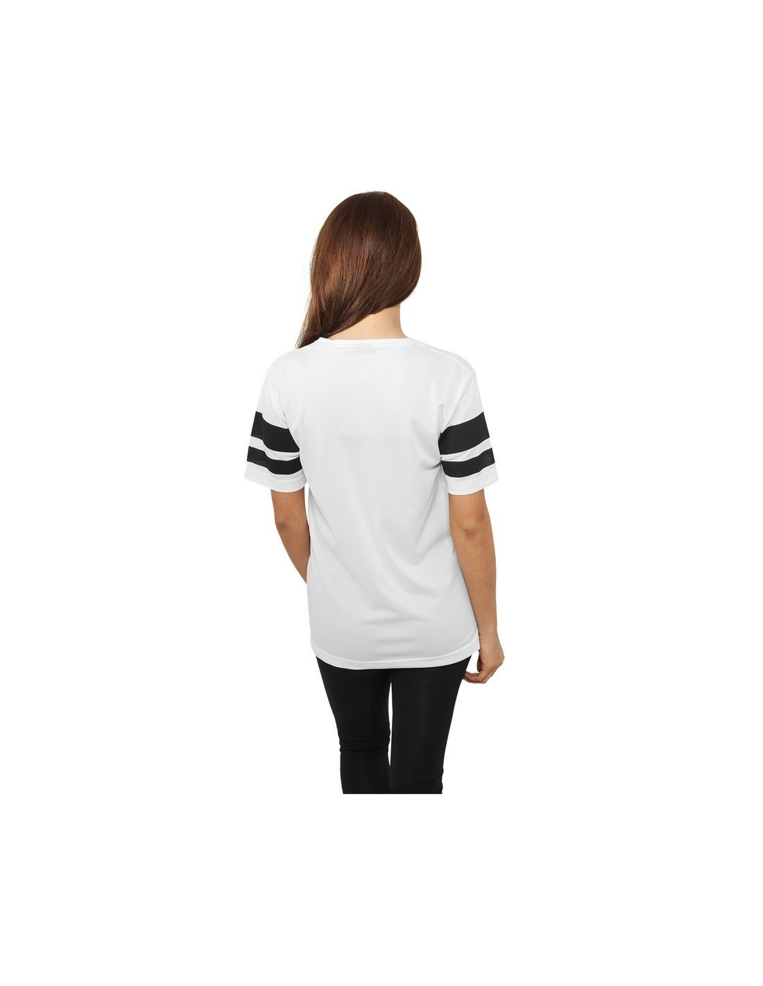 Cool sporty Tshirt til kvinder i urban stil. Hvid med sorte striber. Supertrendy streetwear.100% polyester.