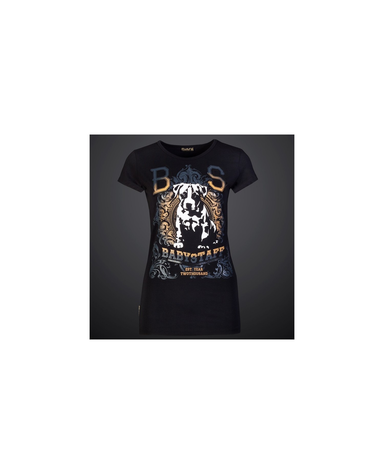 Urban sort T-Shirt fra hundebrandet Babystaff med et flot farvet Puppy print på forsiden. Printet gentages i grå toner bagpå. T-Shirten er i bomuld med en smule elastane, som sikrer den supergode, fittede og behagelige pasform.