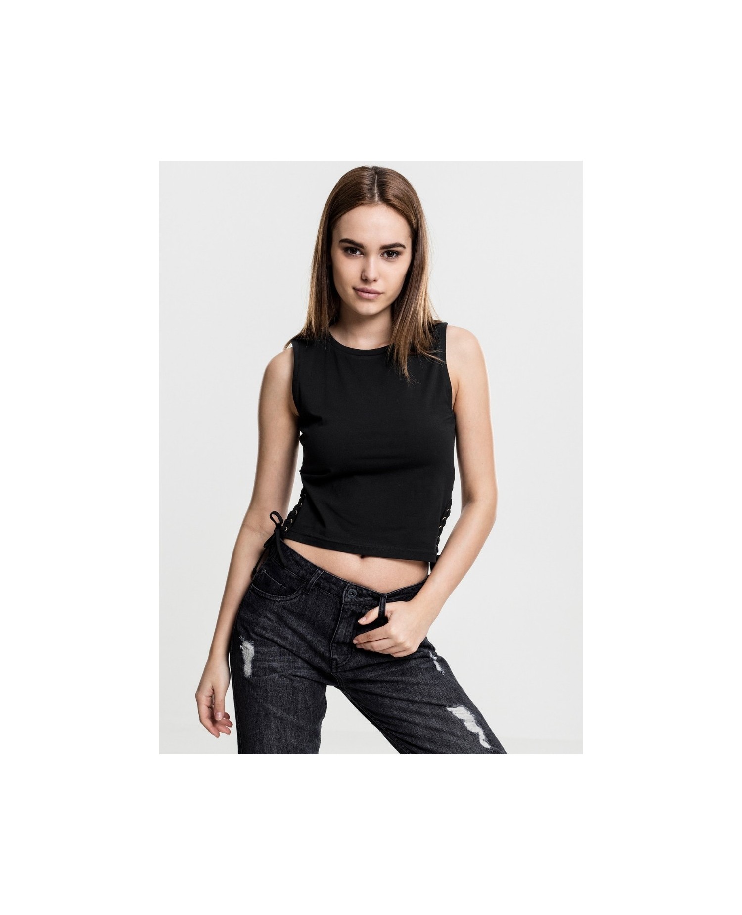 Sporty Lace Up Cropped Top Black