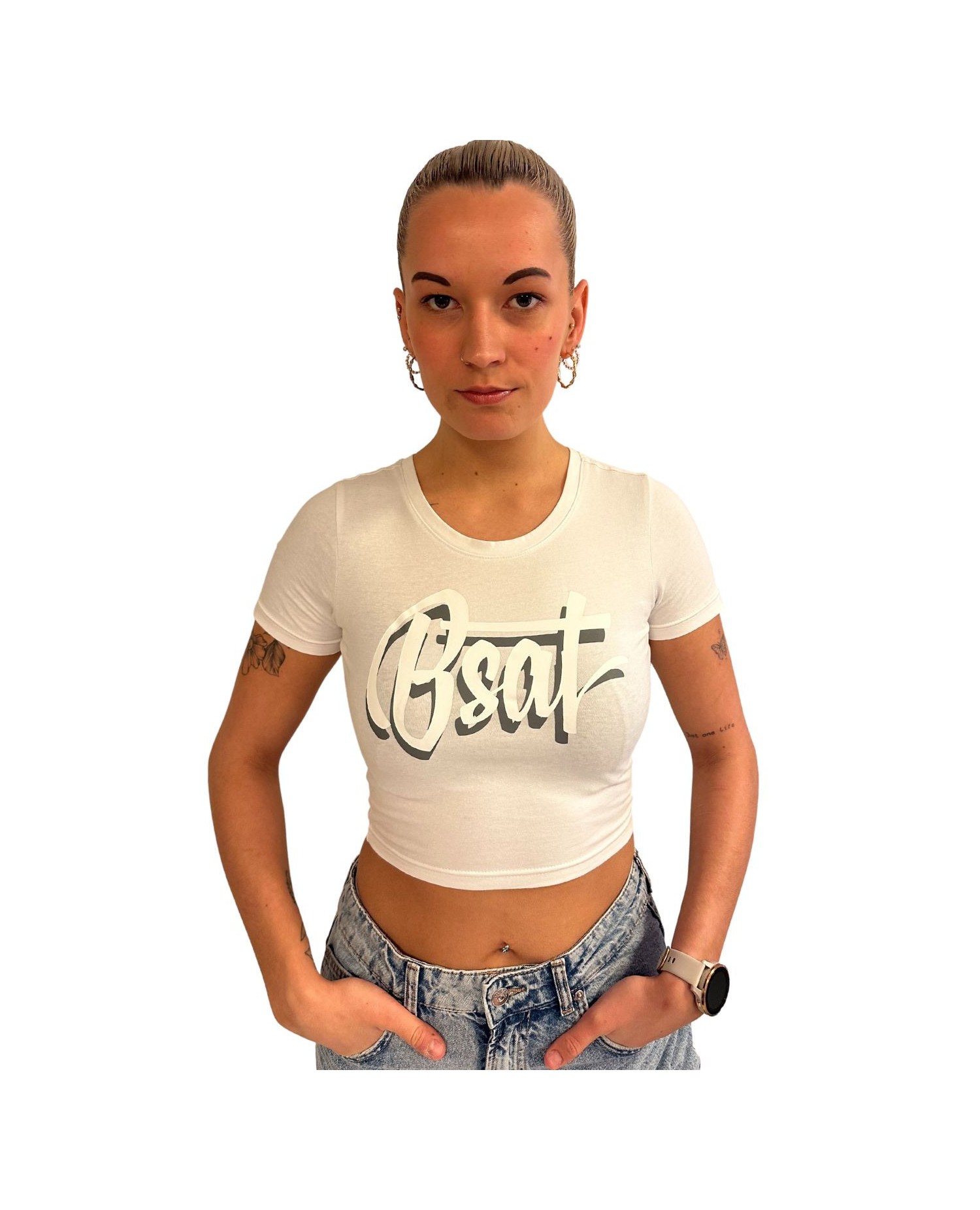 BSAT Logo Crop Top White