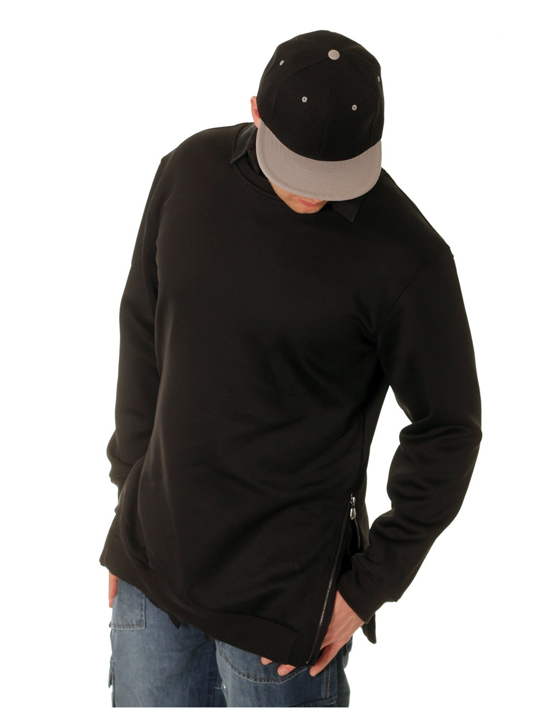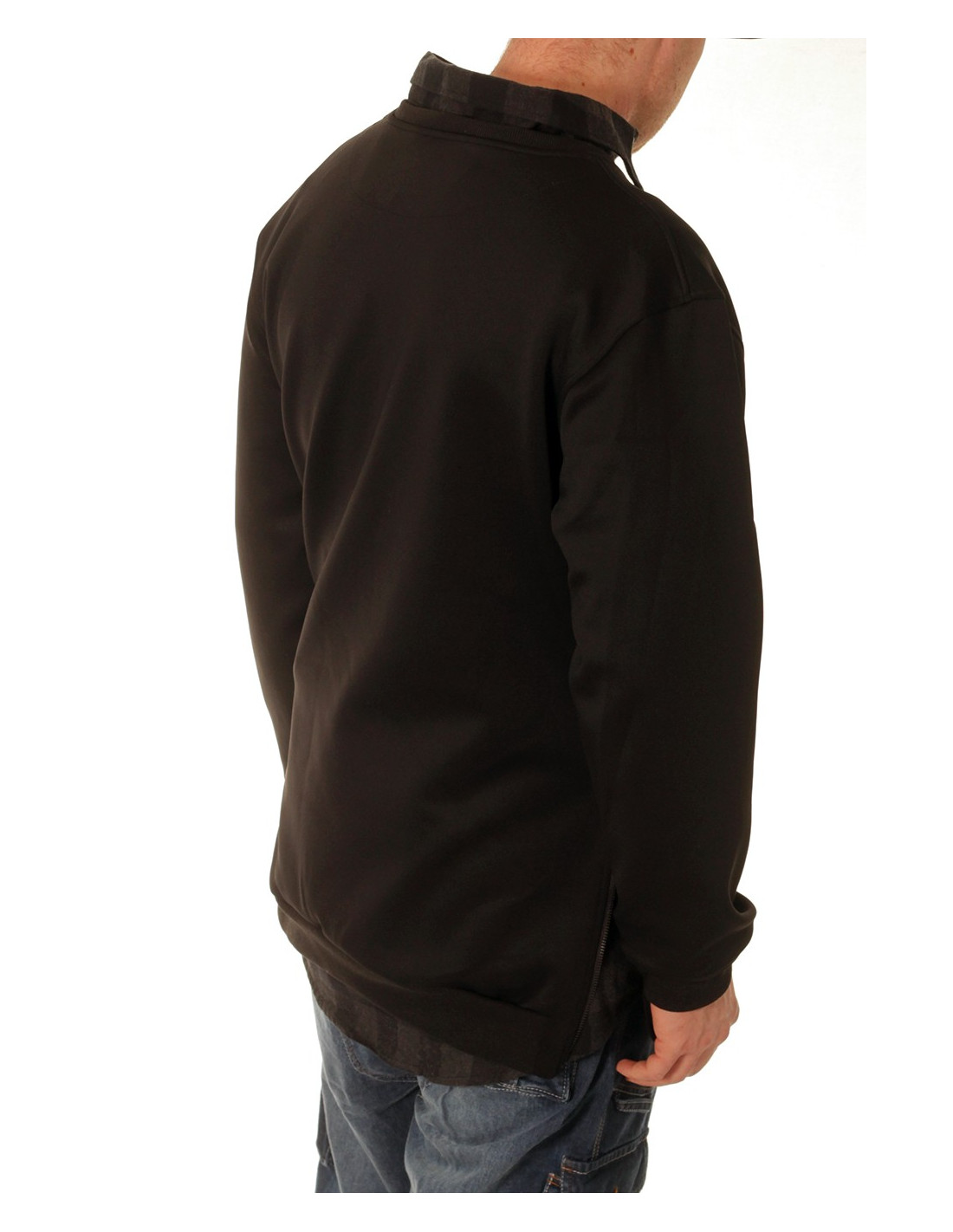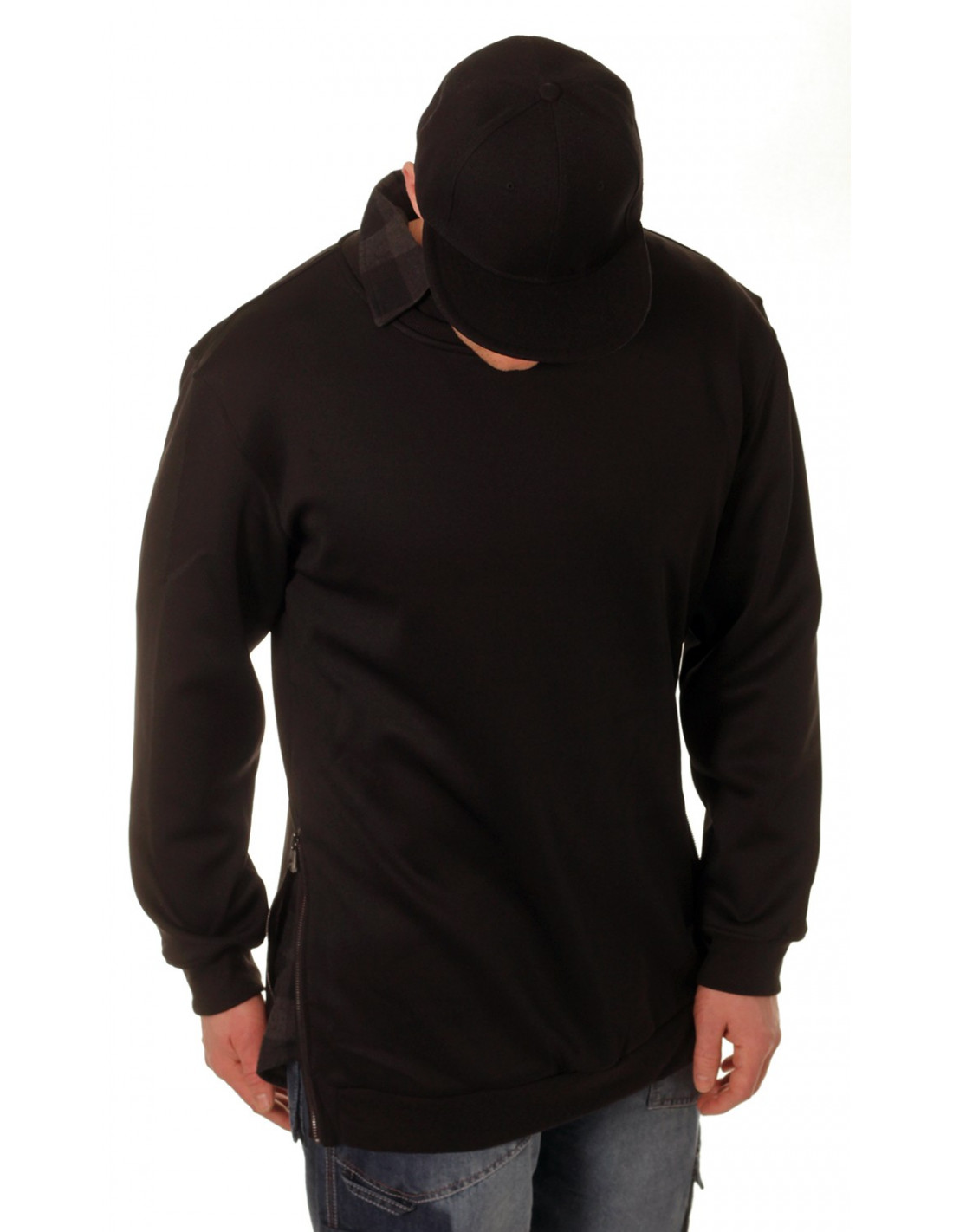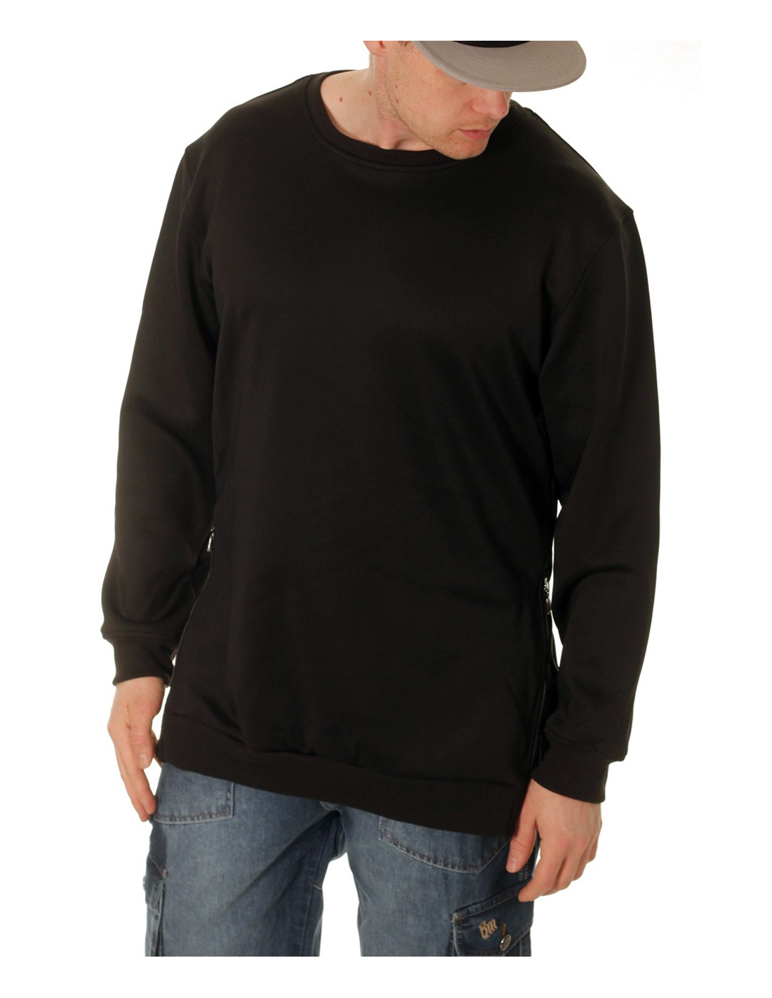 Side-Zip trøjen er en sporty, sort Shirt med en smart 20 centimeters lynlås i begge sider. Shirten er mega trendy og ekstra lang. Materiale: 93% polyester, 7% spandex. Maskinvask ved max 30 grader på vrangen. Undgå tørretumbler og strygejern.