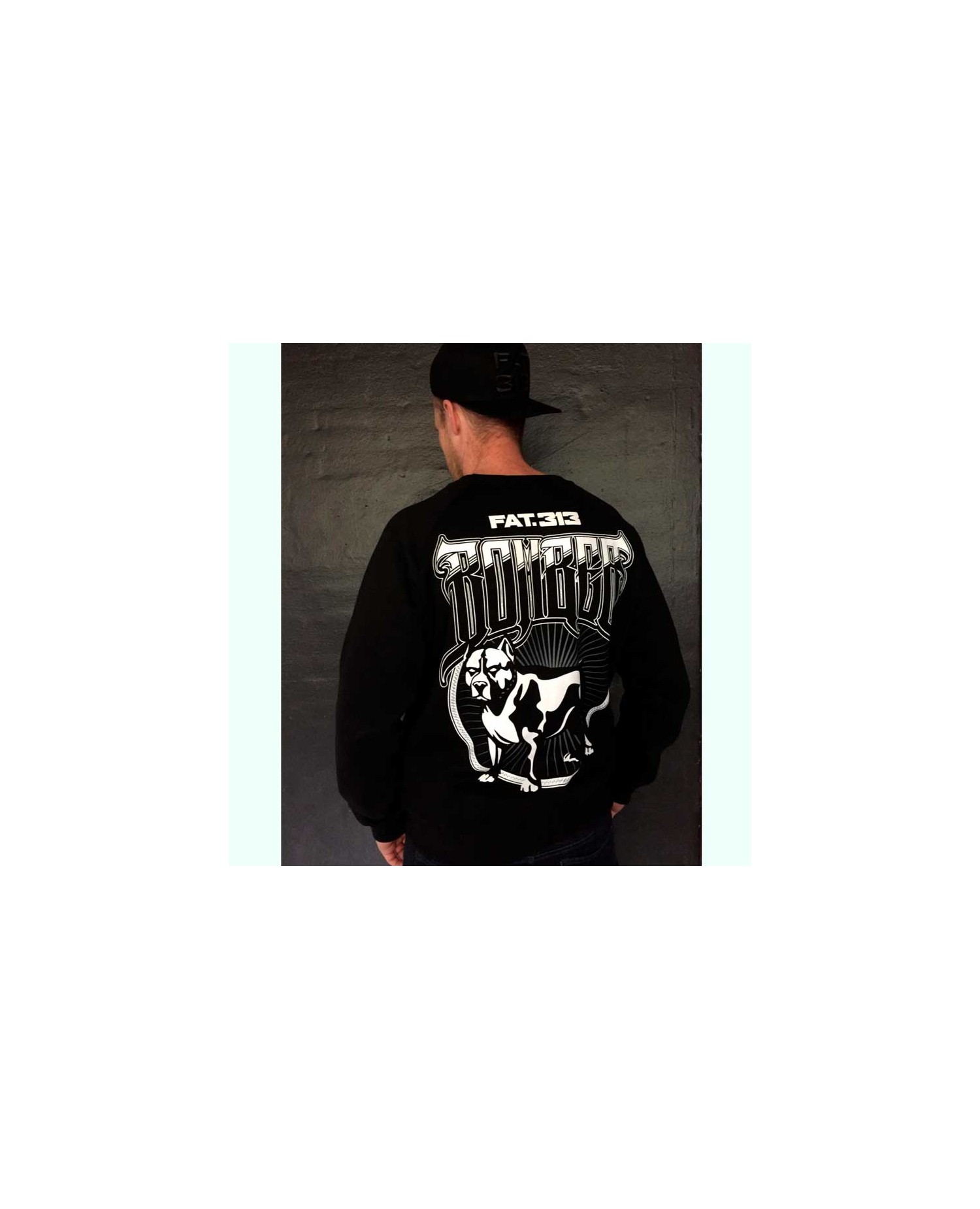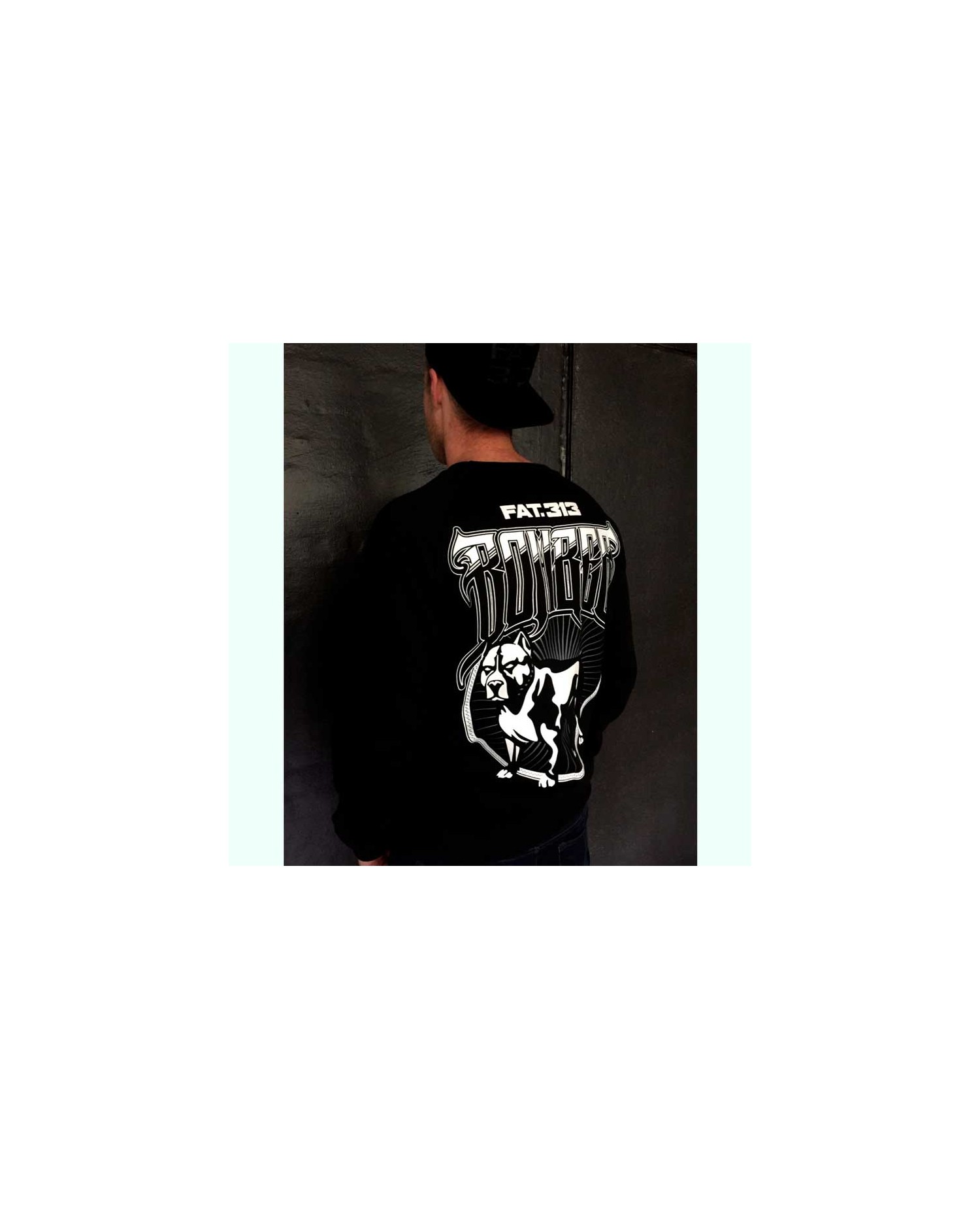 Den sorte Bomber Dog Crewneck har et stort hvidt Bomber Dog print. Den stærke Bomber hund troner i et race univers. Der er fart og styrke på spil. Styrken fremhæves henover ryggen med det store hvide Bomberprint . Et mindre broderet rød/hvid brandlogo mærker Crewnecken i nakken. Bomber Dog Designet er hamrende stærk streetwear. FAT313 er et premium Streetwear Fashion Brand med stærke rødder i det urbane storby liv og med sit helt eget udtryk: FAT313 spænder fra designs med sværvægtstunge brandlogo broderier over afdæmpede designs med hundebrand patches til store broderede FAT313 hunde.