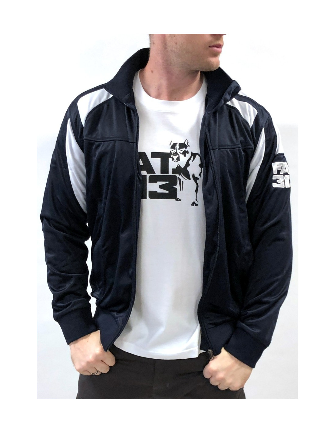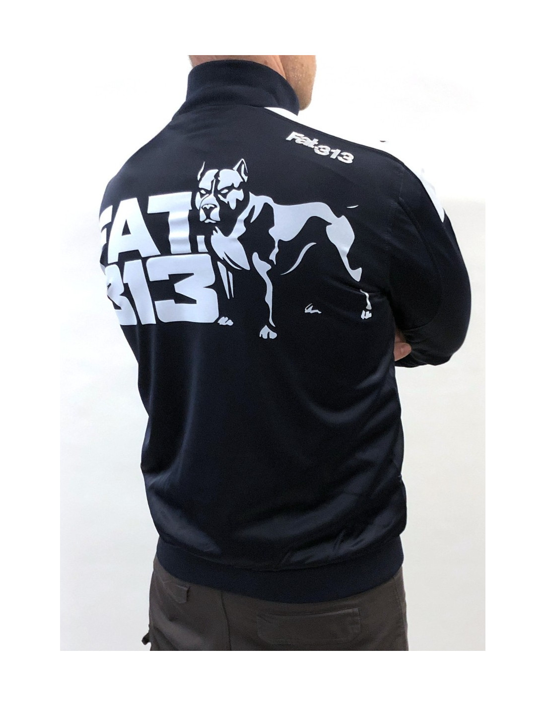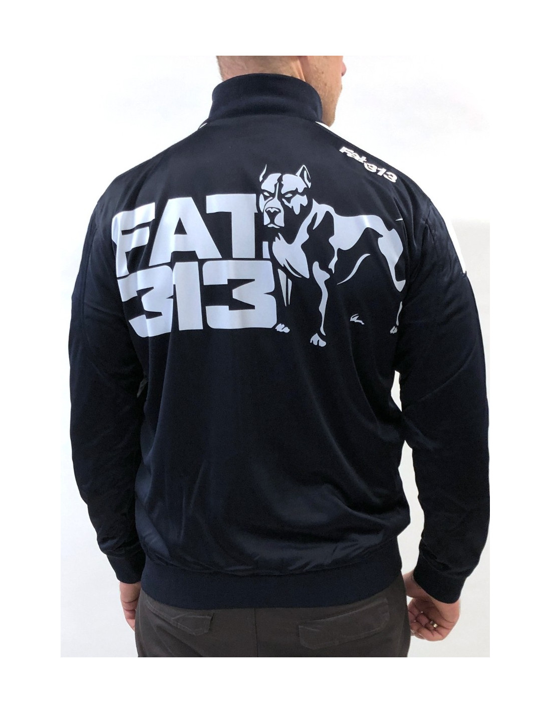 FAT313 kombinerer det trendy Legend design med brandets nye Master Trackjacket. De hvide paneler i den blå TrackJacket fremhæver den maskuline figur og giver et cool og sporty look. Looket forstærkes yderligere af den hvide stribe på ærmernes ribkante. Et stort trykt brandlogo hundedesign troner på ryggen, mens brandlogoet er stitchet på venstre ærme og det karakteriske Forester logo er stitchet på højre skulder. Jakken er forsynet med en sporty inling. FAT313 er et enestående premium Brand med sit helt eget udtryk: FAT313 spænder fra designs med sværvægtstunge brandlogo broderier over afdæmpede hundebrand patches til store broderede FAT313 hunde. Tilfælles for alle designs er, at FAT313 har meget god stil og høj klasse.