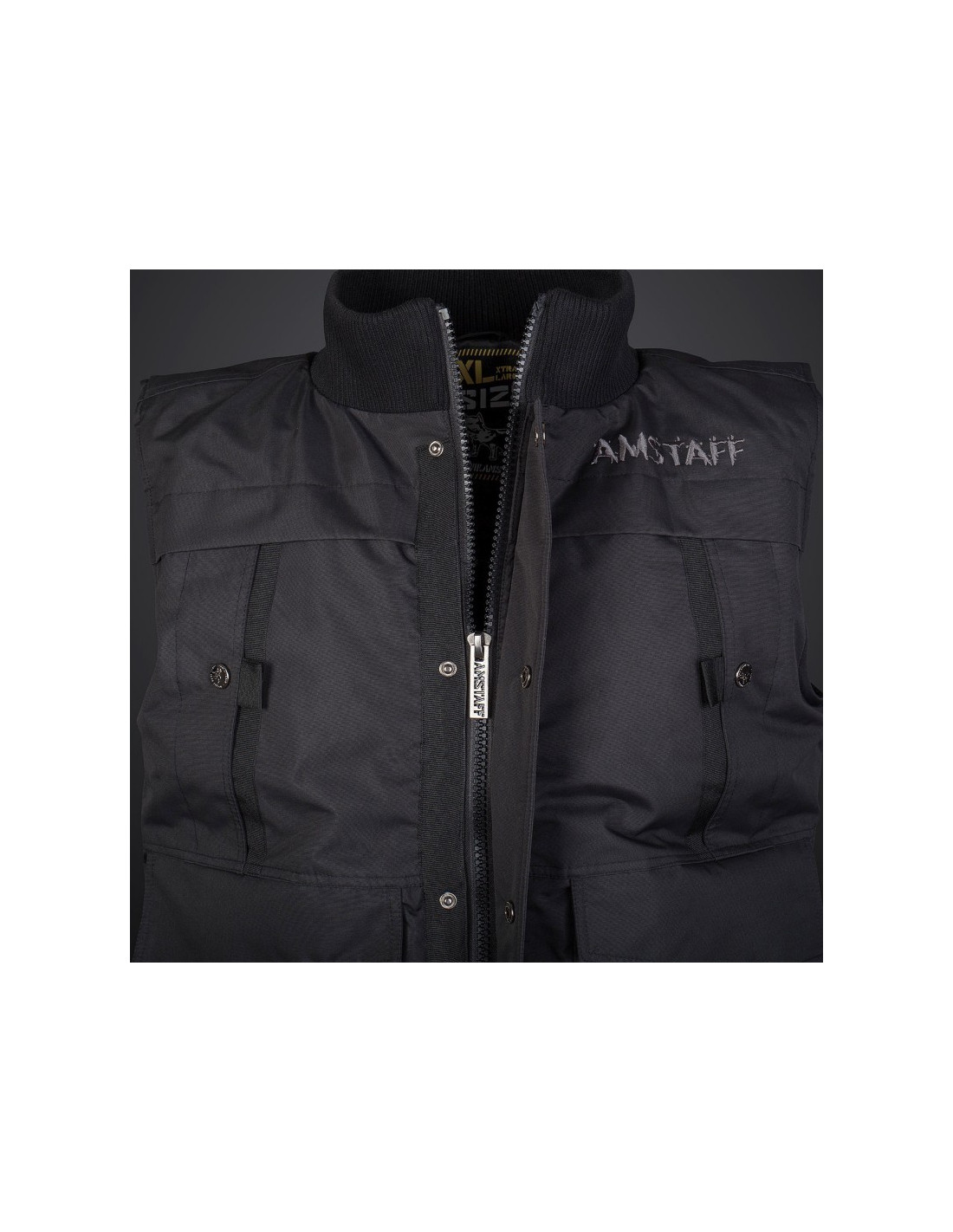 Stilet og maskulin sort Conex Vest fra Amstaff. Vesten har brandets karakteristiske hundeprint på både for- og bagside. Indvendigt og i lommerne har vesten en behagelig fleecelining.