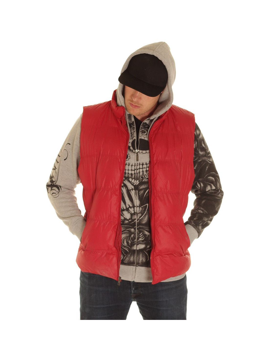 Ensfarvet rød Bubble Vest med lommer fra det amerikanske Streetwear tøjmærke Access Apparel.