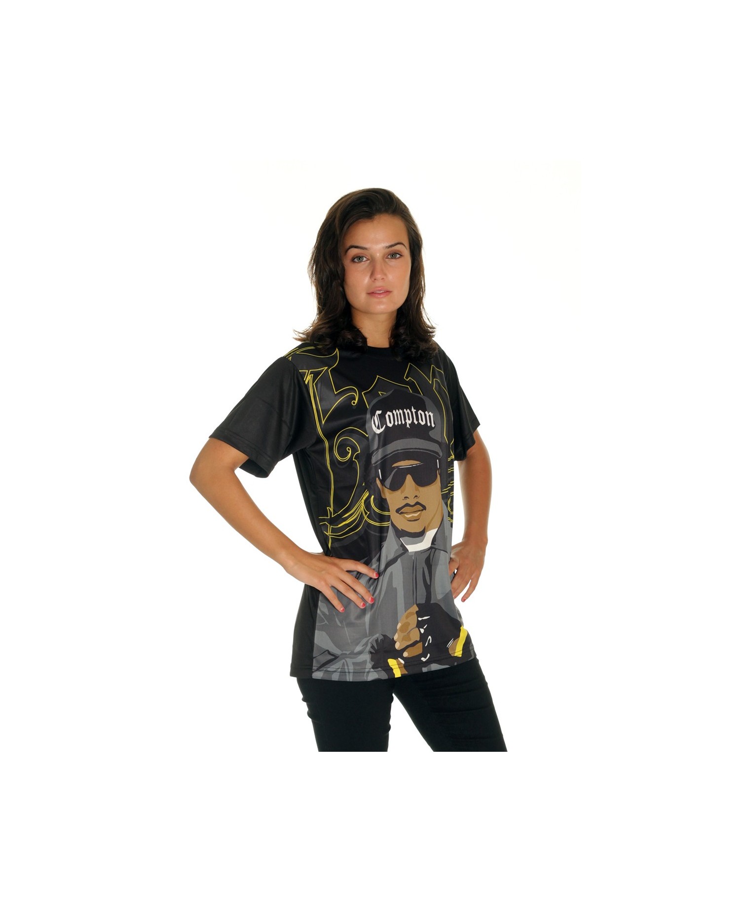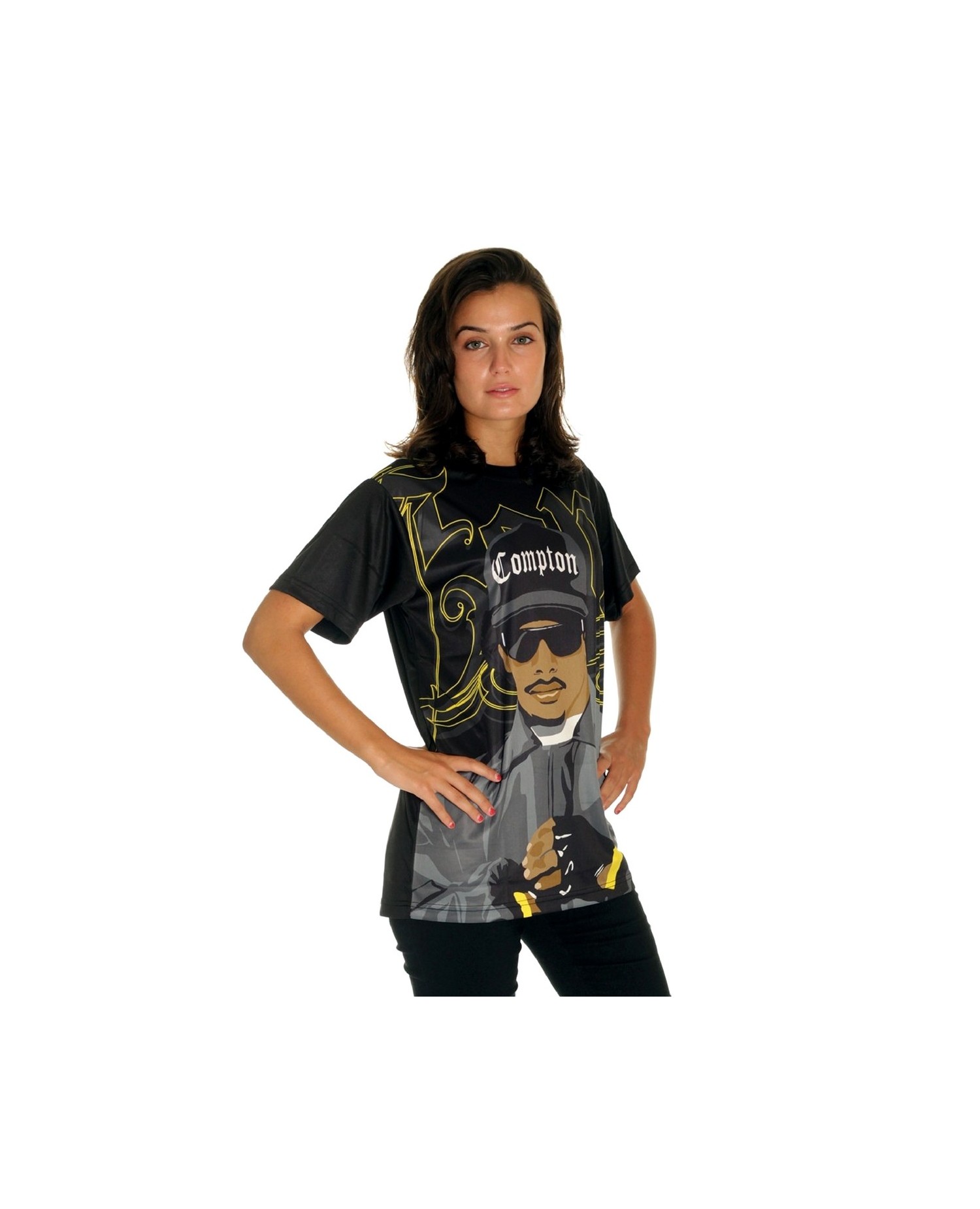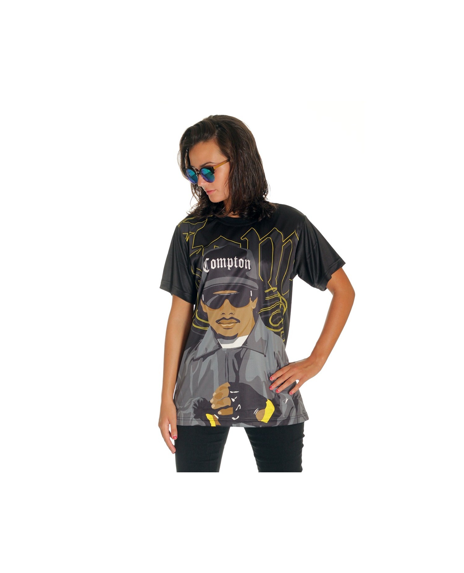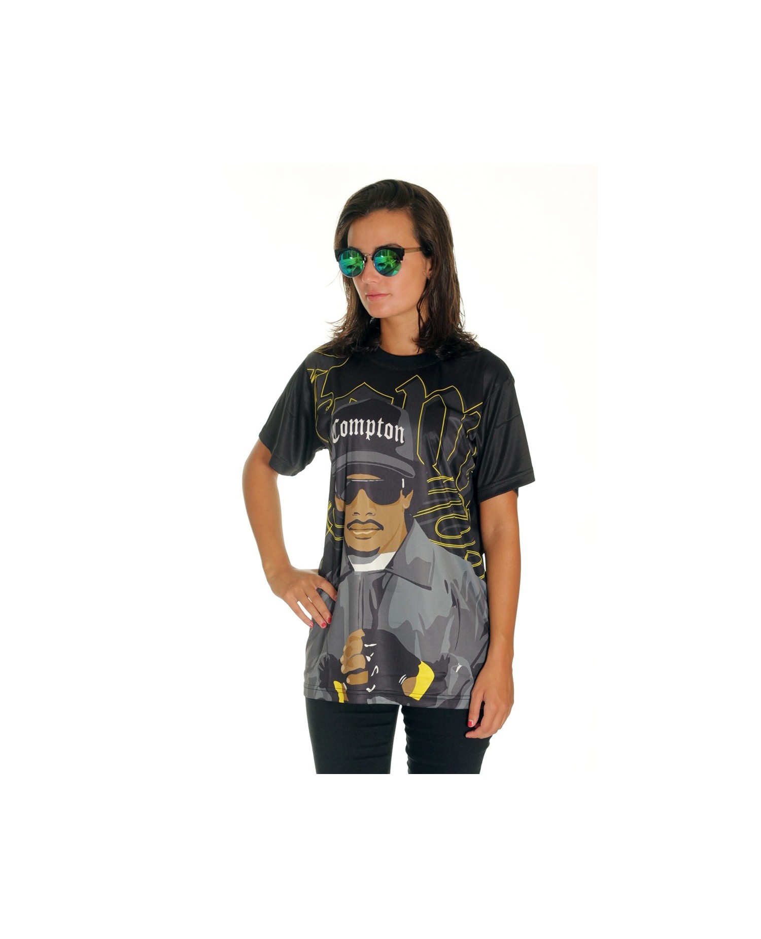 GangstaRap Legend Eazy-E T-Shirten er fra BSAT Compton linjen. I Straight Outta Compton linjen bekender BSAT sig til rapmusikken og gangstarappen og hylder genrens legender som Tupac Shakur og Eazy-E . De hyldes med stil og helt unikke håndtegnede designs. Eazy-E var medlem og skaber af den legendariske hiphopgruppe N.W.A. (Niggaz Wit Attitude), som grundlagde den amerikanske gangstarap. Som rapper, producer og ejer af pladeselskabet Ruthless Records skrev Eazy-E sig ind i rapmusikkens historie med store bogstaver. Han døde kun 30 år gammel af AIDS i 1995. BSAT's Eazy-E design portrætterer hans storhed i et stærkt, smukt og kreativt design. Eazy-E er en over-size T-Shirt og fremstillet med sublimation teknik. Det betyder, at T-Shirten er lavet af et blødt, behageligt og ultralet polyester materiale, som minder meget om det, de fleste kender fra sportswear. Vi siger TAK herfra til brandet BSAT Clothing for et super cool Eazy-E design!