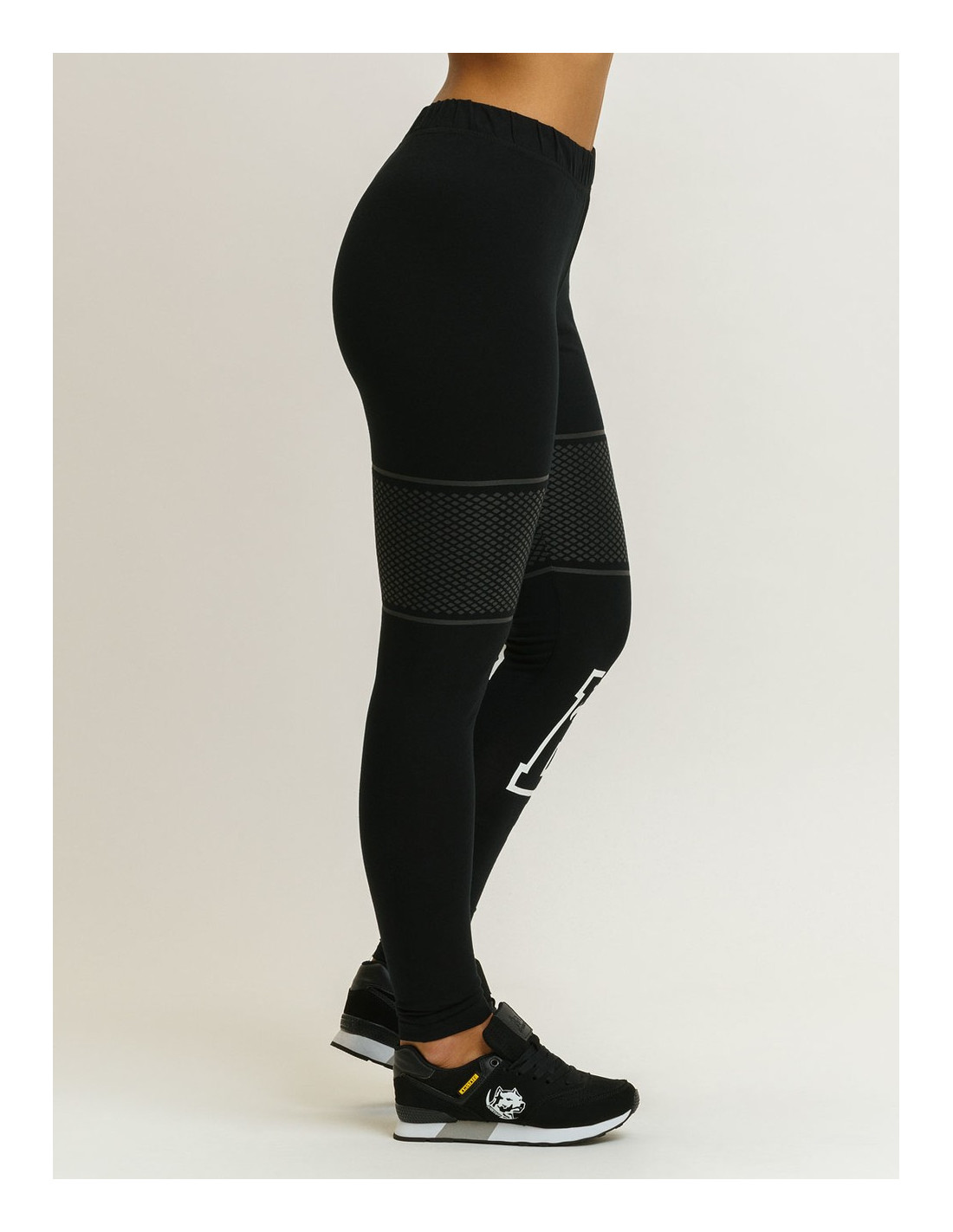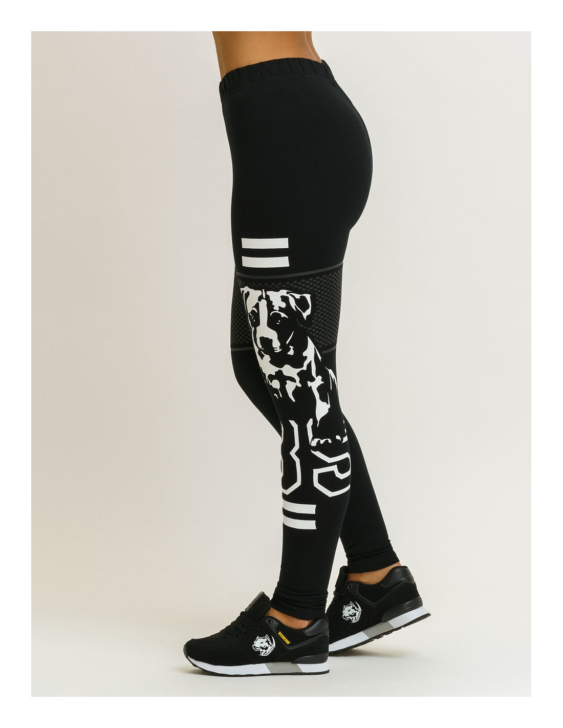 Sporty, seje, sorte leggings med den sødeste brand Puppy ned af siden. Babystaff er navnet.
