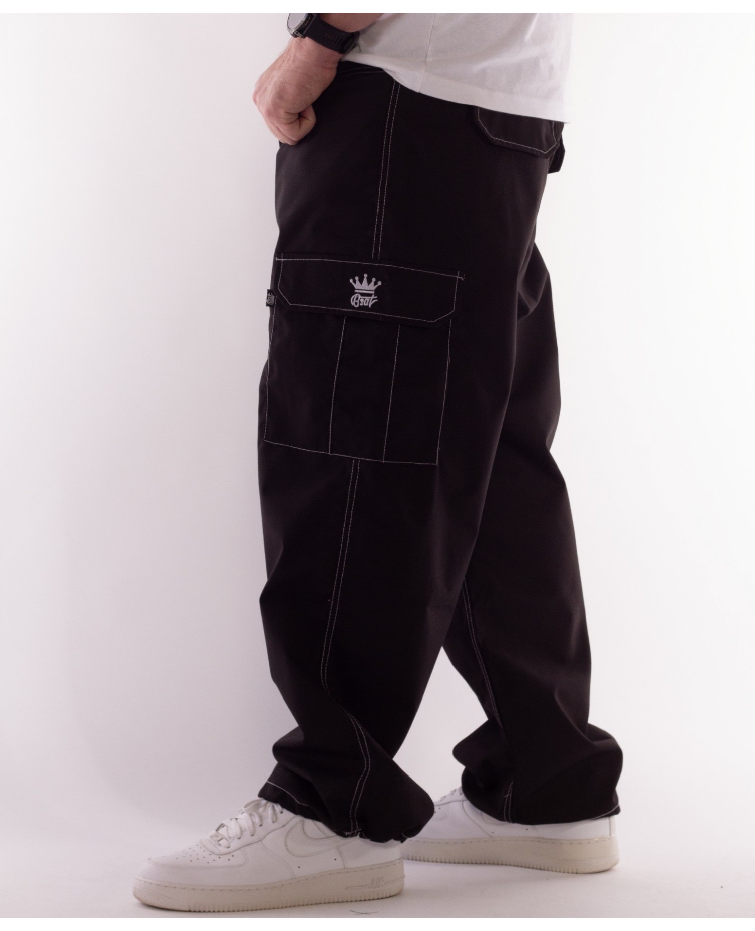 BSAT Baggy Combat Cargo Pants Black Contrast White