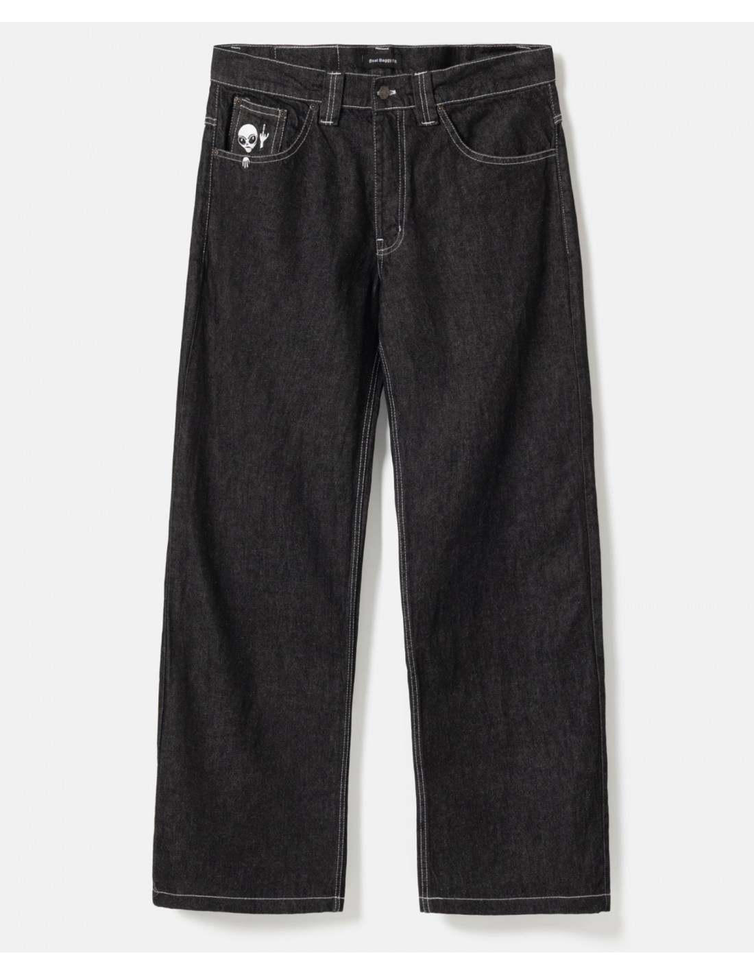 BSAT Aliens 4 Peace The Finger Raw Black n White Baggy Jeans