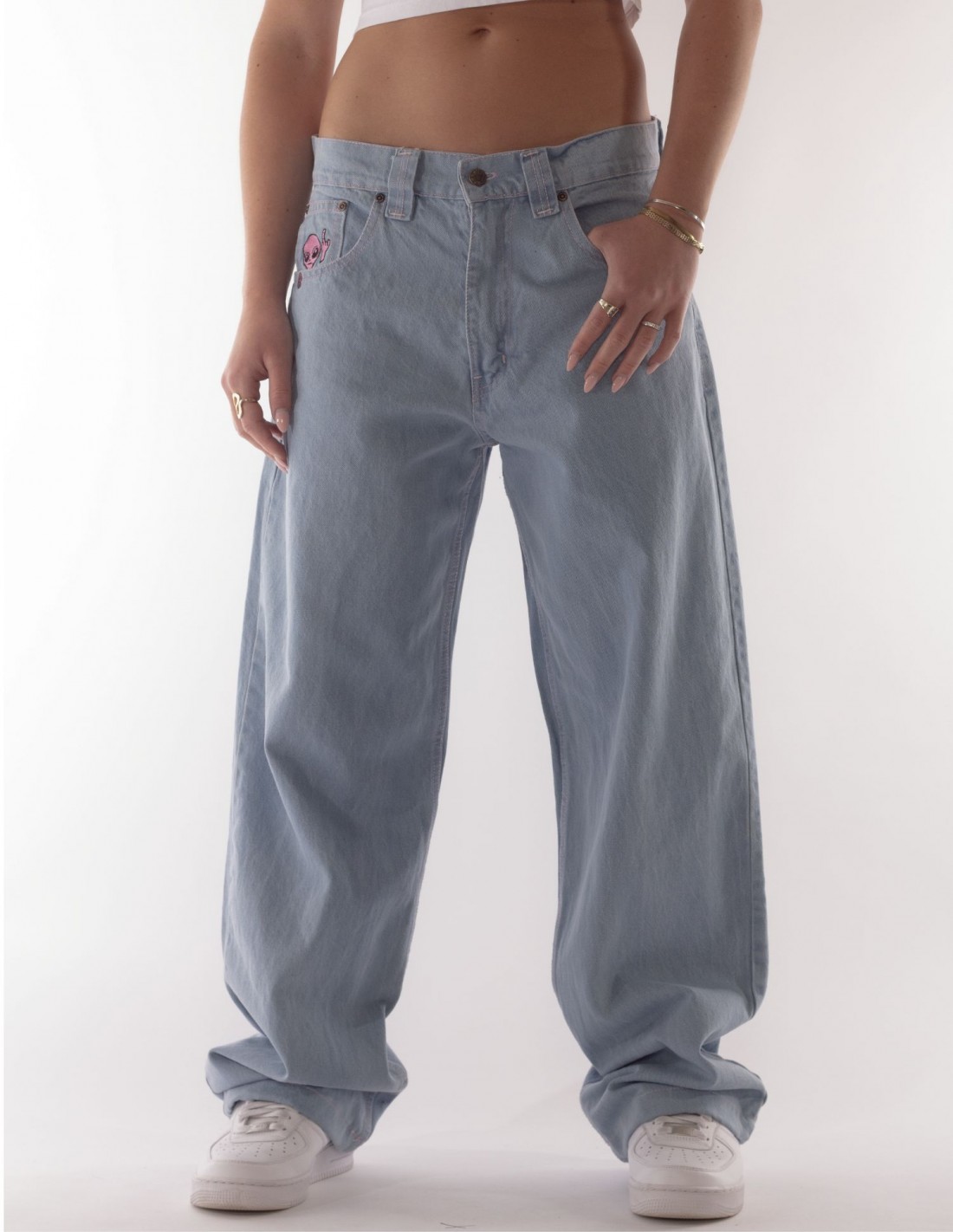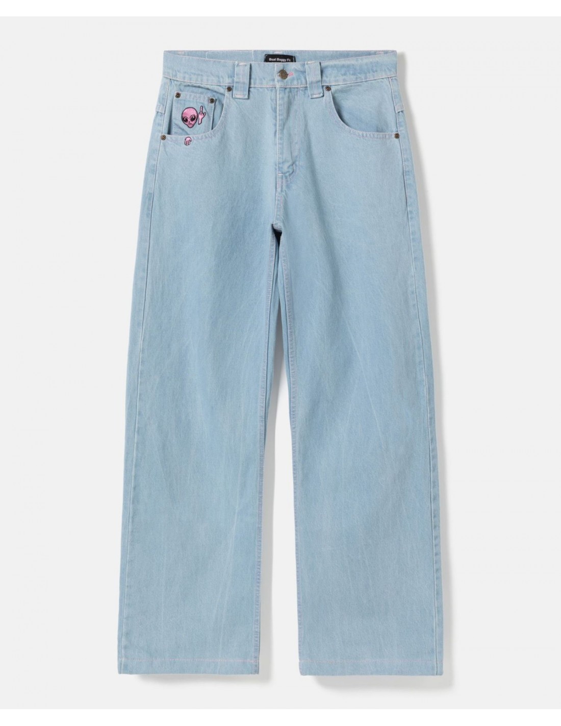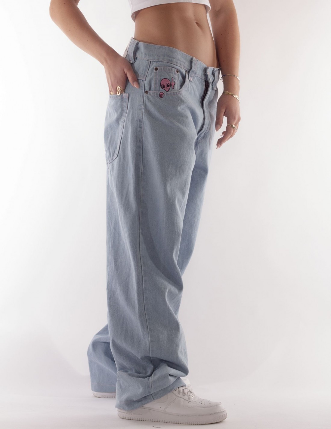 BSAT Aliens 4 Peace The Finger Sky Pink Contrast Baggy Jeans