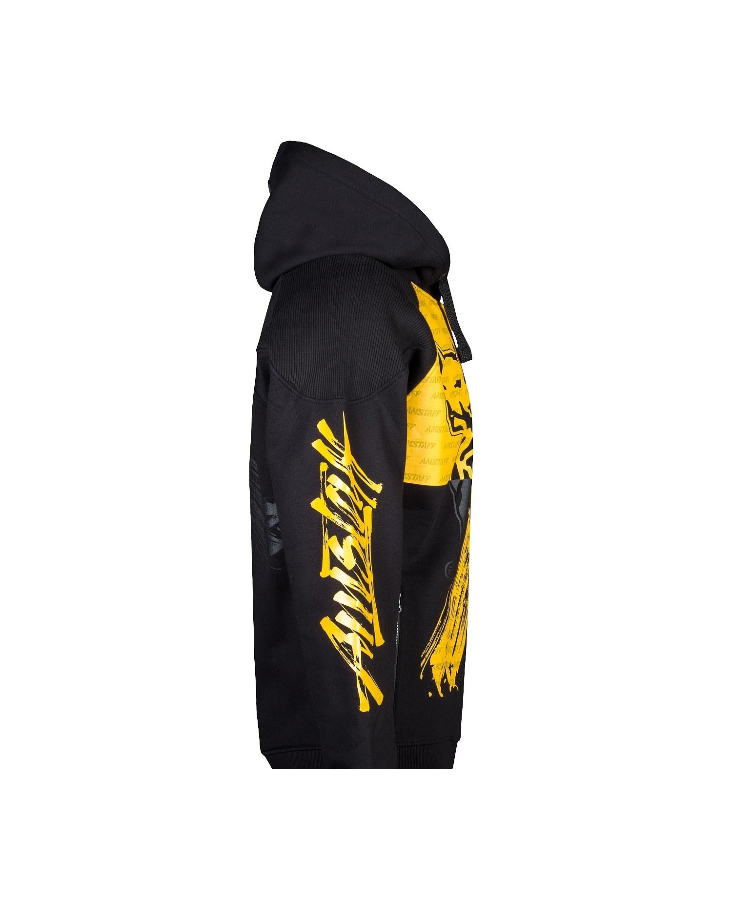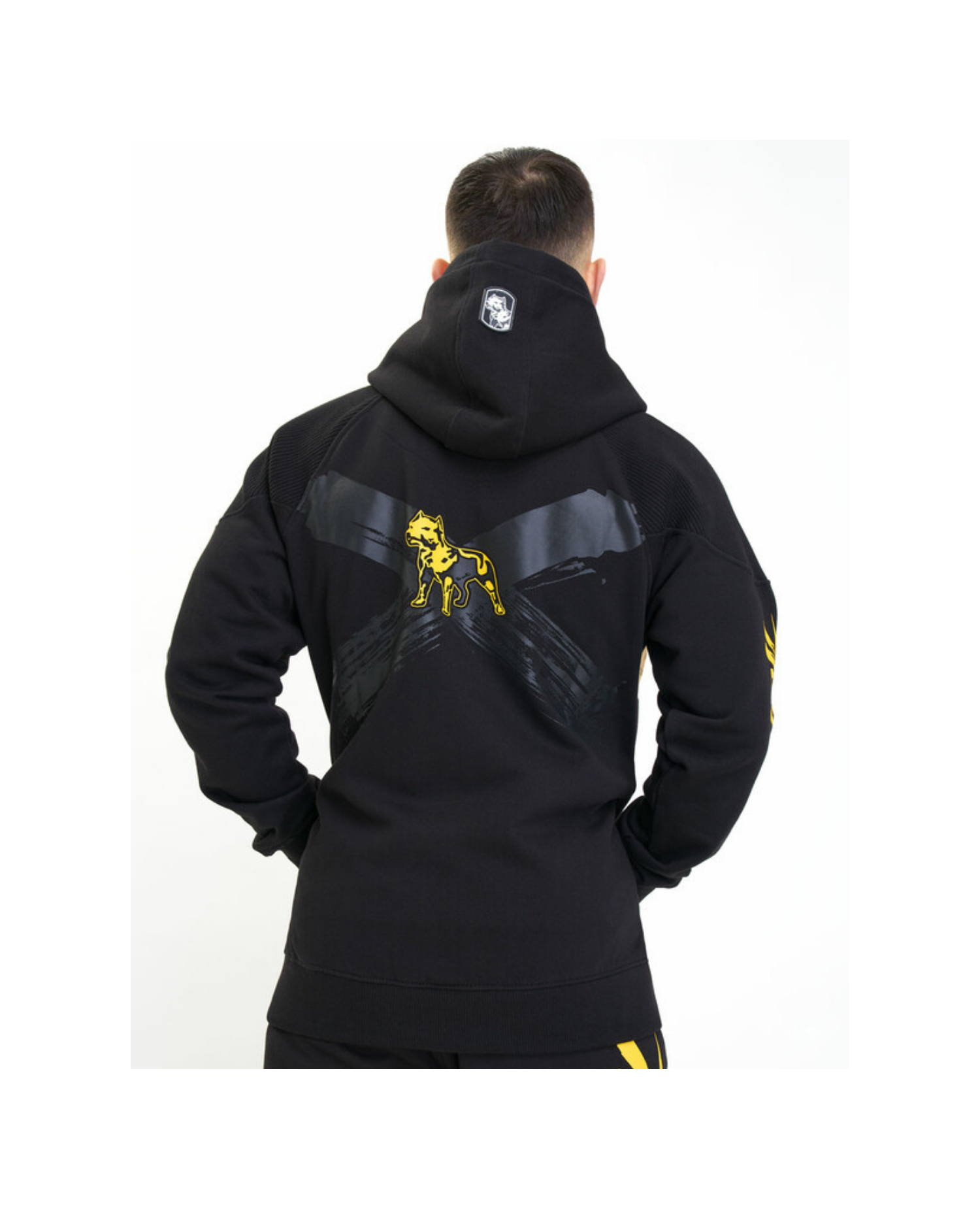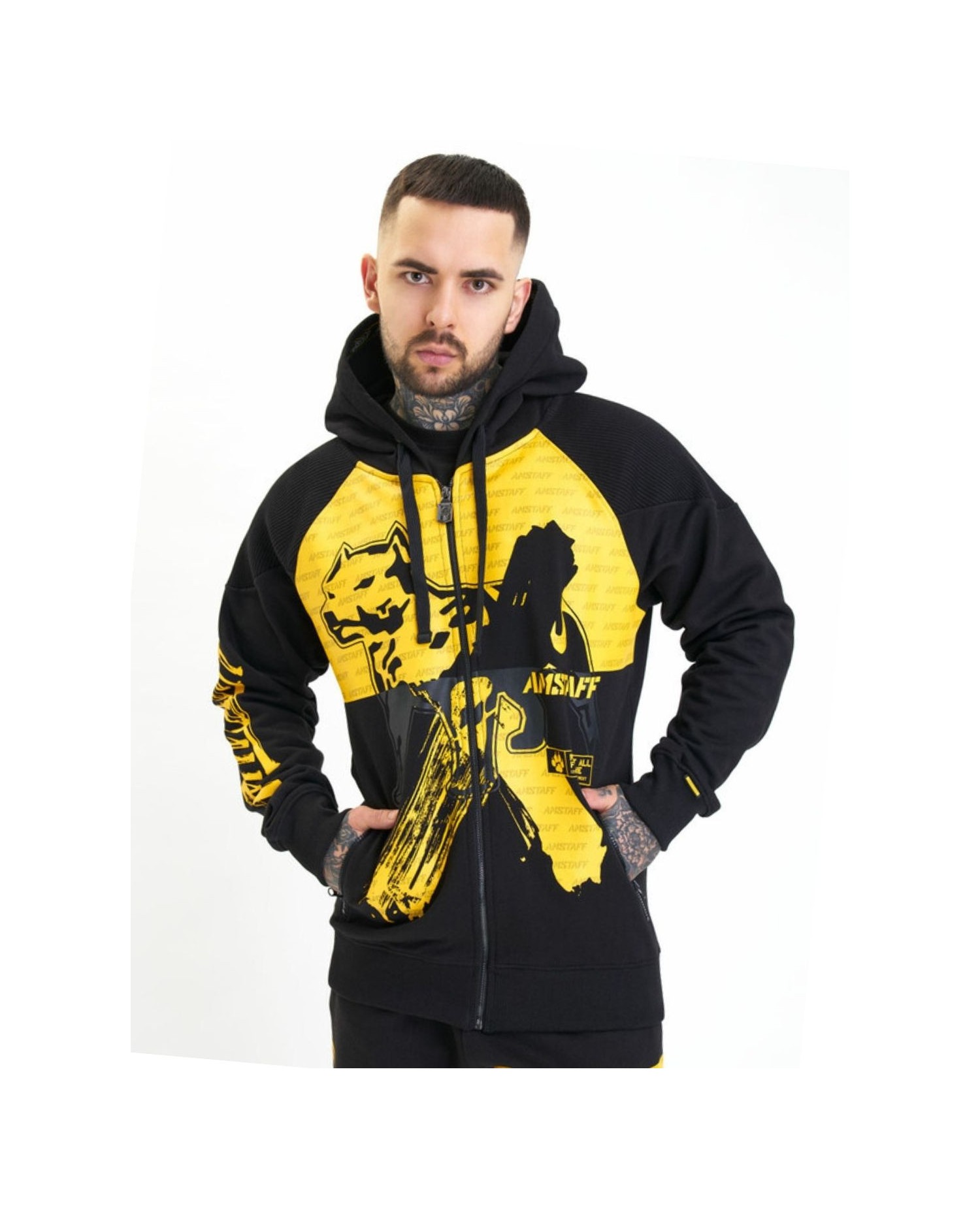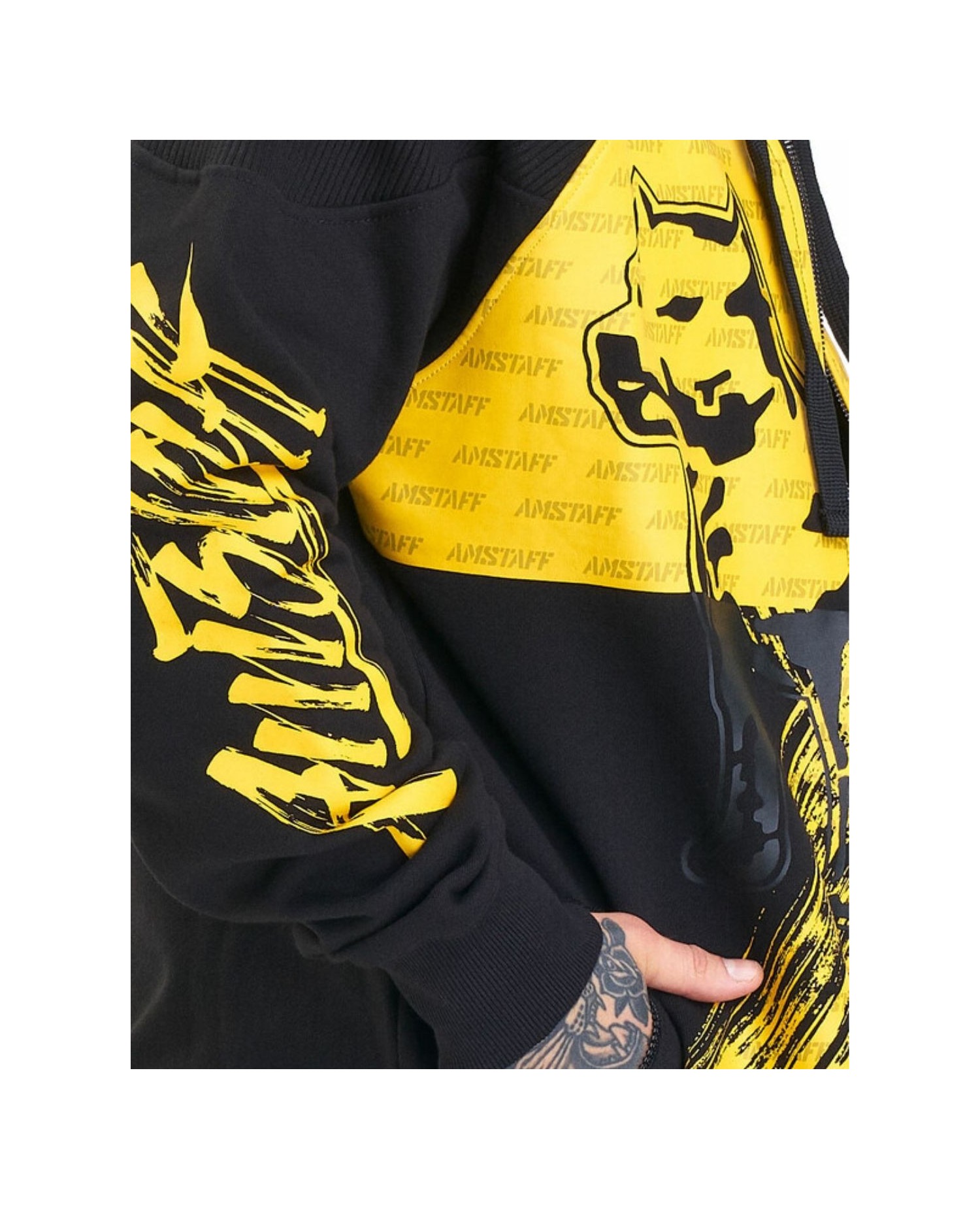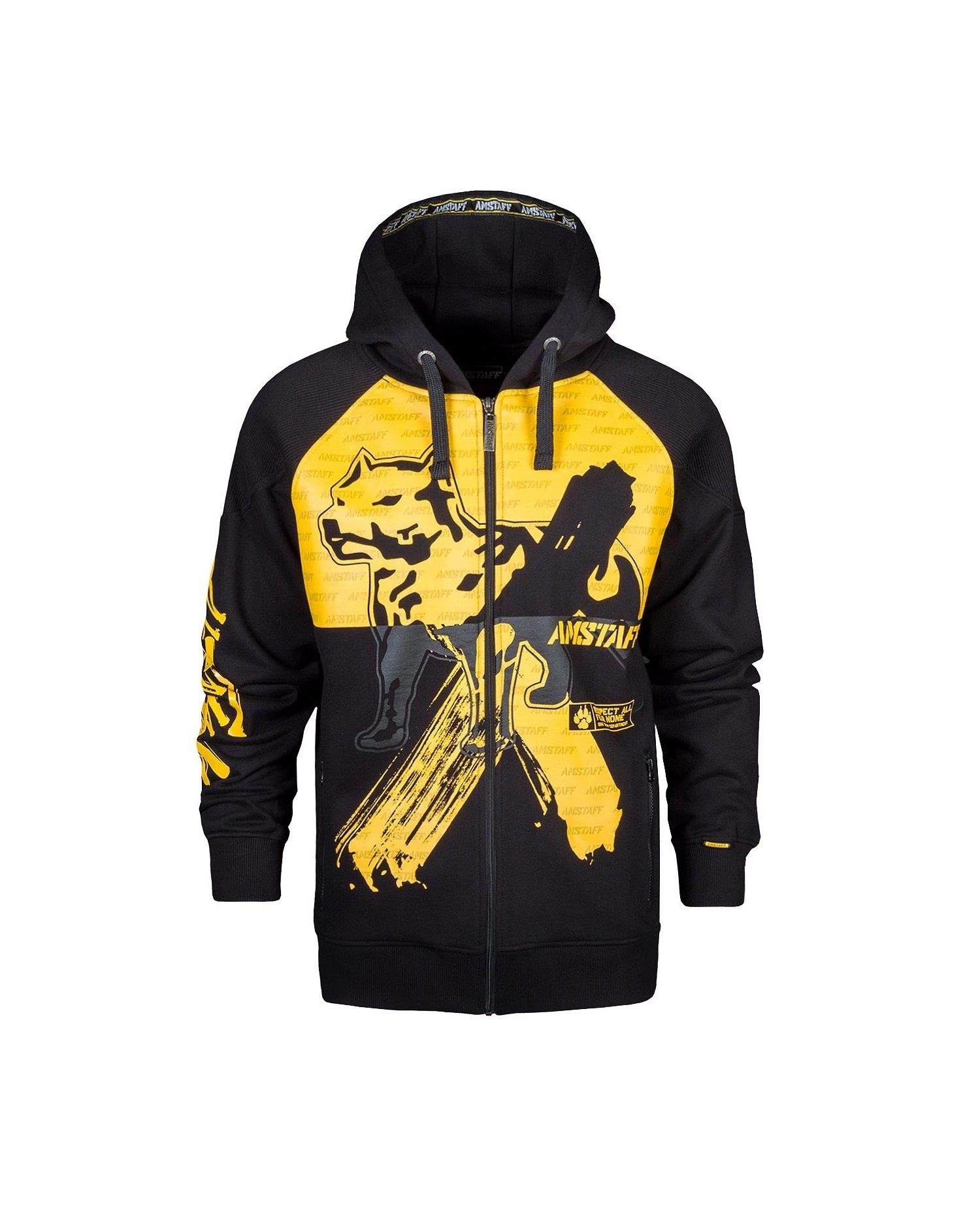 Iøjnefaldende Amstaff ZipHoodie med fede brandlogo detaljer i sort og gul. Ingen korsvej kan holde den vågne Amstaff hund tilbage. Stærkt maskulint design.
