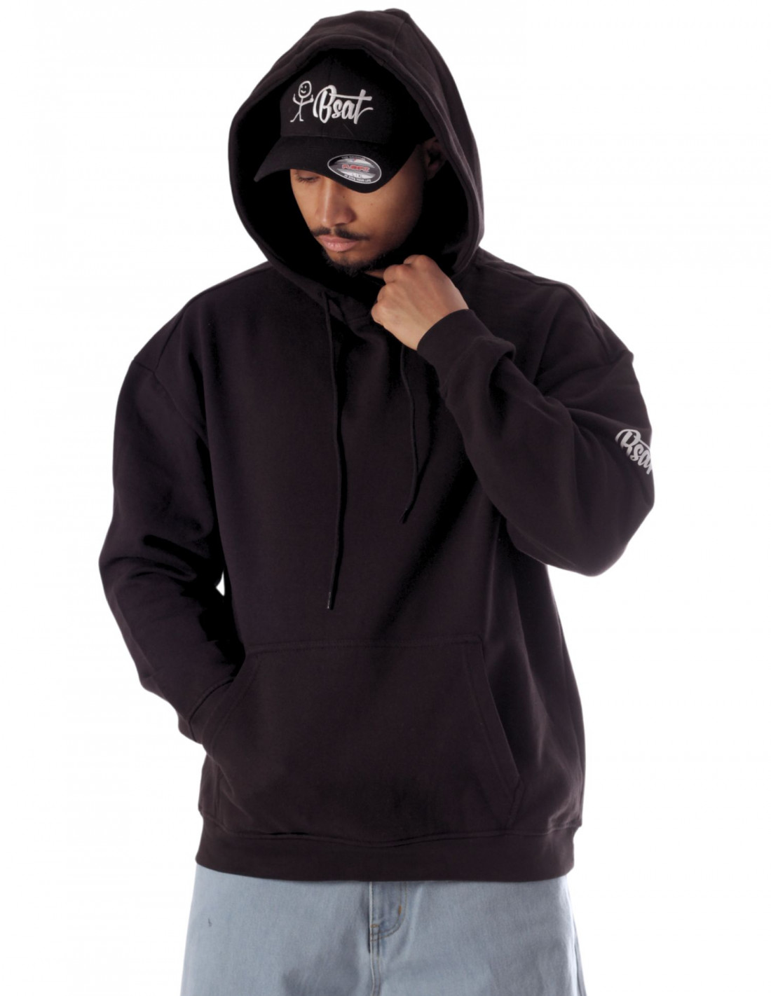 Et imponerende RAP GOD Artwork rocker bag på ryggen, mens forsiden er natsort. Et mindre BSAT logo brand'er hættetrøjen på venstre ærme.