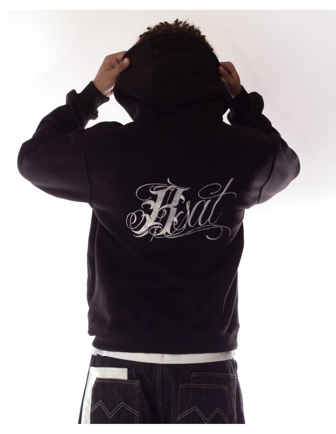 Det markante Art Script-broderi løfter designet og tilfører dybde og karakter, uden at tage fokus fra den rene hvide base. Klassisk hætte, ribkanter og en afslappet silhuet gør den nem at style året rundt.