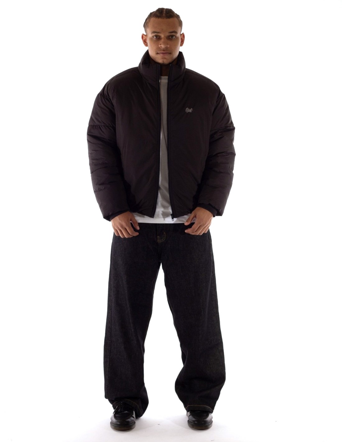 Jakken har et puffet, oversized fit og et rent, hoodless look, som giver den et afslappet, men gennemført udtryk. Perfekt over en hoodie eller sweatshirt.